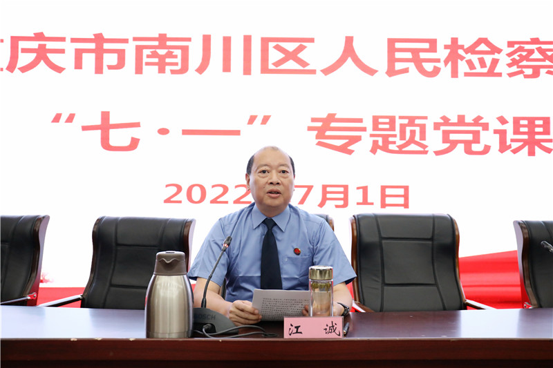 最后,院党组书记、检察长江诚围绕学习贯彻重庆市第六次党代会精神,以《总结成绩、谋划发展、精准施策、从严治党》为题为全院干部职工讲授专题党课。他强调要深刻理解、全面领会市第六次党代会精神,推动会议精神与检察工作深度融合:一是重总结,“不忘来时路”,在保持本院优良传统和特色的同时,不断总结发展,提升业务水平和能力;二是谋发展,“走出特色路”,结合工作实际,创造性开展检察工作,在坚持“稳中求进”总基调的同时,服务保障经济发展;三是抓施策,做实“质量建设年”,从执法办案、检察建议、案件质量评查、日常管理等方面抓好高质量发展;四是强基础,落实“严管就是厚爱”,持续狠抓“三个规定”落实,深入开展警示教育,突出严管,用活用足政策,积极主动组织好各类活动,体现厚爱。