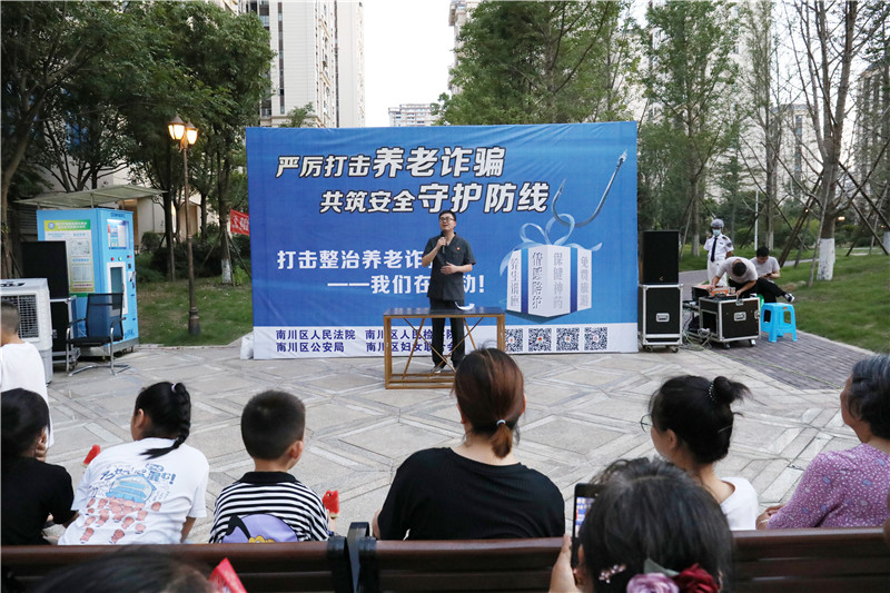 近日,我院联合区法院、公安局走进社区开展打击整治养老诈骗专项普法宣传活动。活动中,我院干警通过自编自导自演的小品向现场观众揭开养生保健品类诈骗伎俩。随后,公安干警介绍了投资理财类、中奖类等常见的诈骗手段及预防举措,法院干警通过以案释法的形式带来一堂生动形象的普法课。最后,干警们还向现场观众分发了反诈防骗、知识产权、非法集资、食药安全等宣传资料,提供了法律咨询服务,得到群众一致好评。