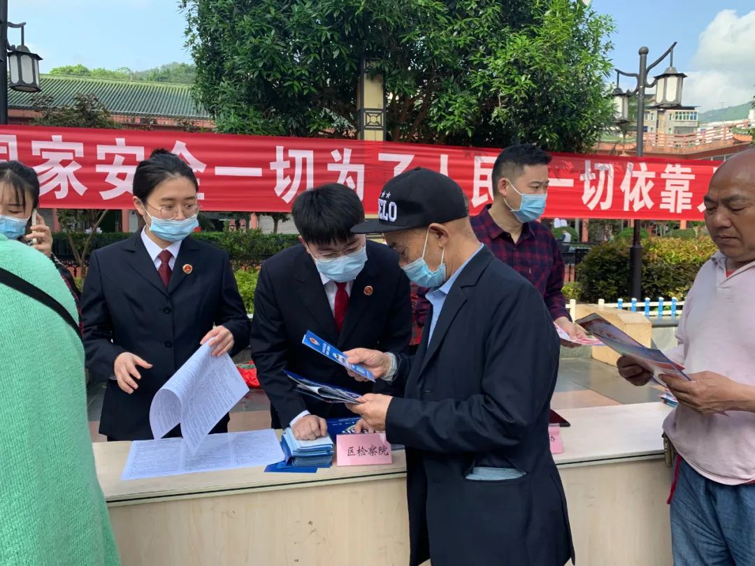 4月13日,在“4·15”全民国家安全教育日来临之际,武隆区检察院检察一部、检察二部就“全面反诈”、“保护知识产权”开展联合普法宣传活动。