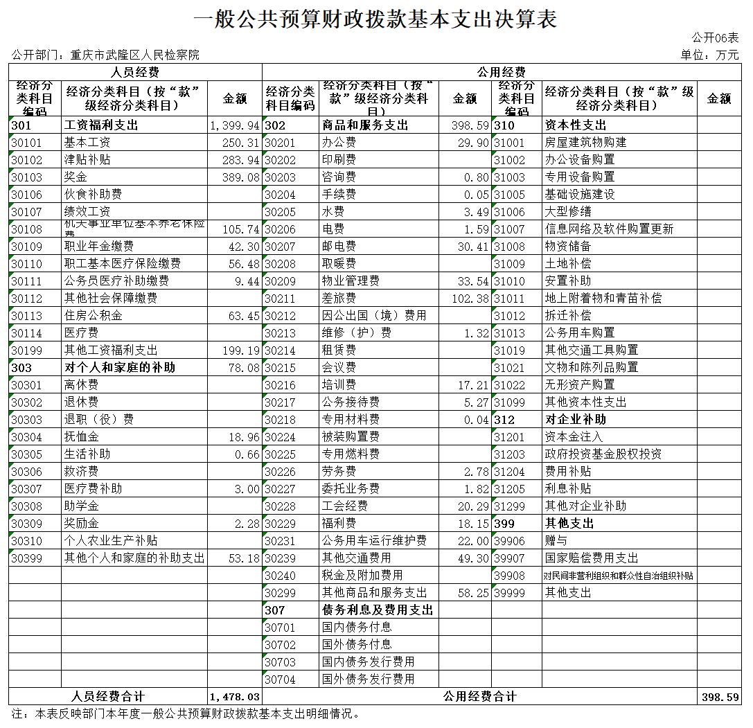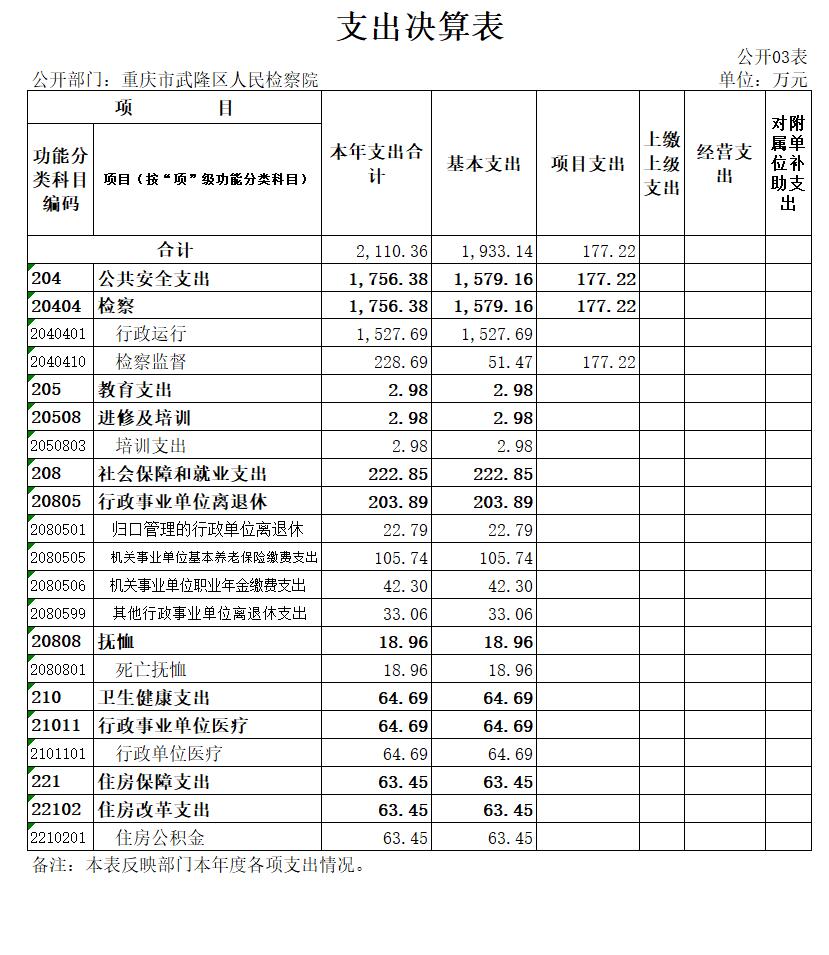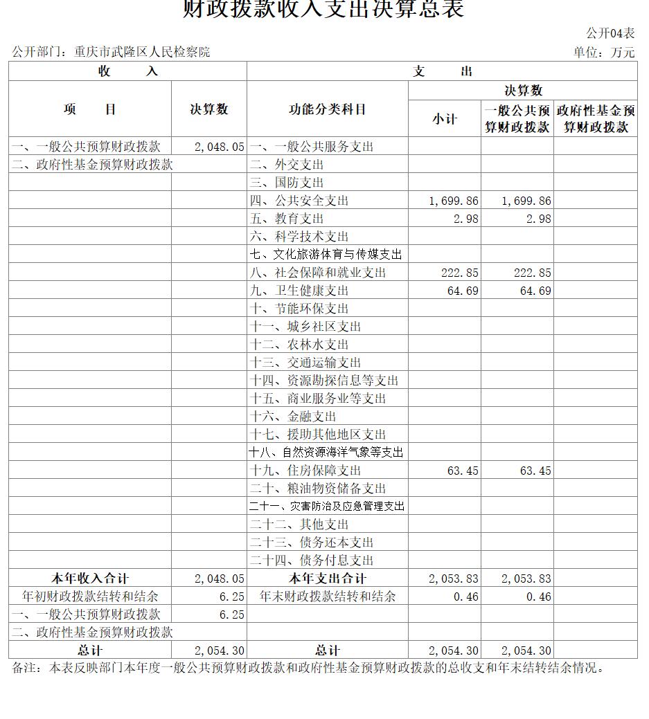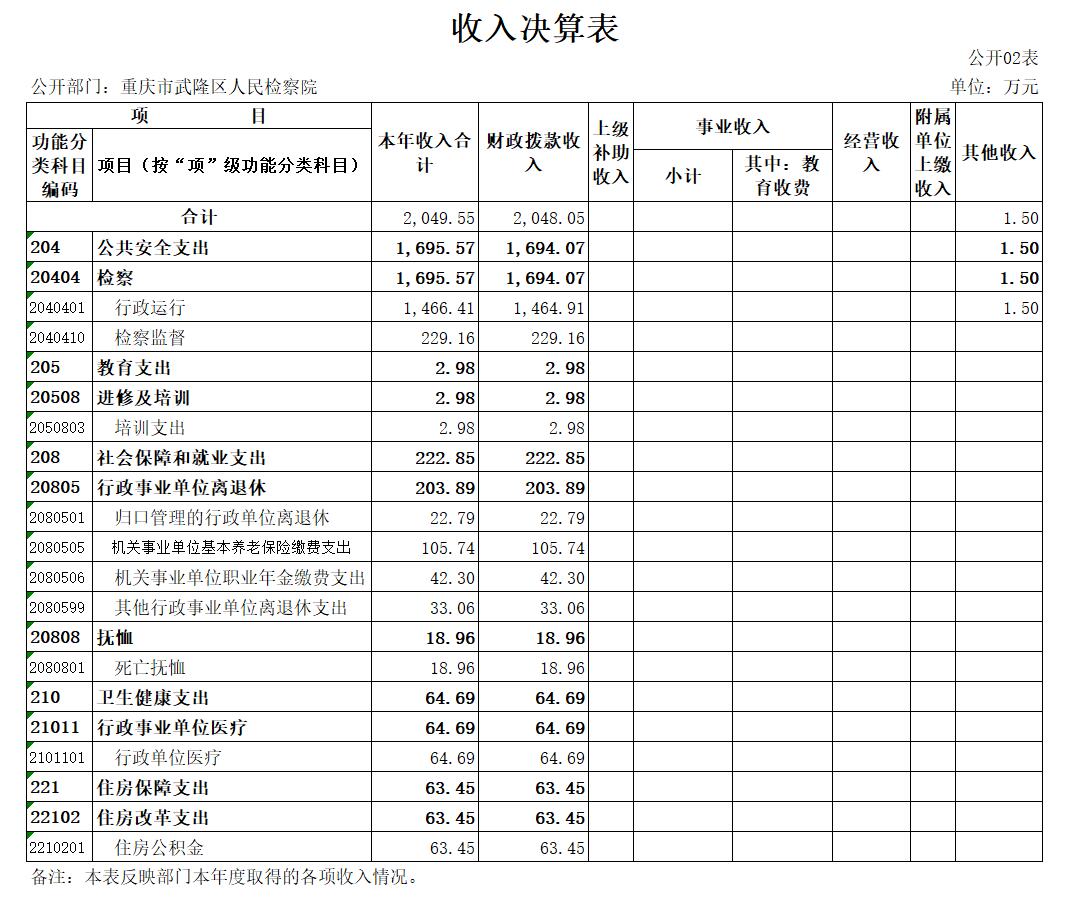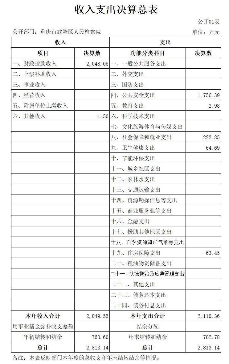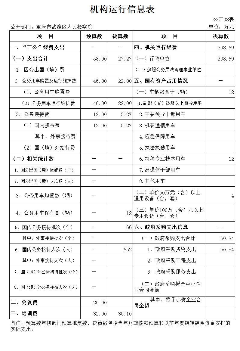 重庆市武隆区人民检察院2019年度部门决算情况说明