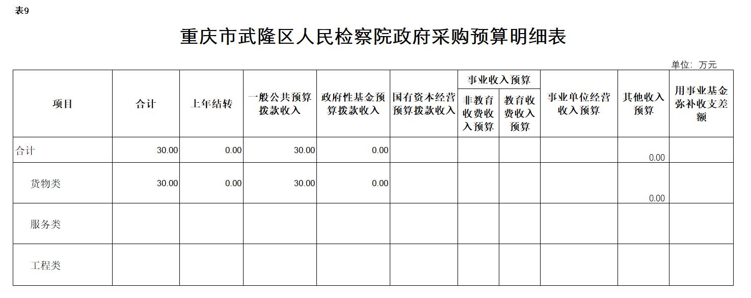 2、政府采购情况。所属各预算单位政府采购预算总额30万元:政府采购货物预算30万元、政府采购工程预算0万元、政府采购服务预算0万元;其中一般公共预算拨款政府采购30万元:政府采购货物预算0万元、政府采购工程预算0万元、政府采购服务预算0万元。