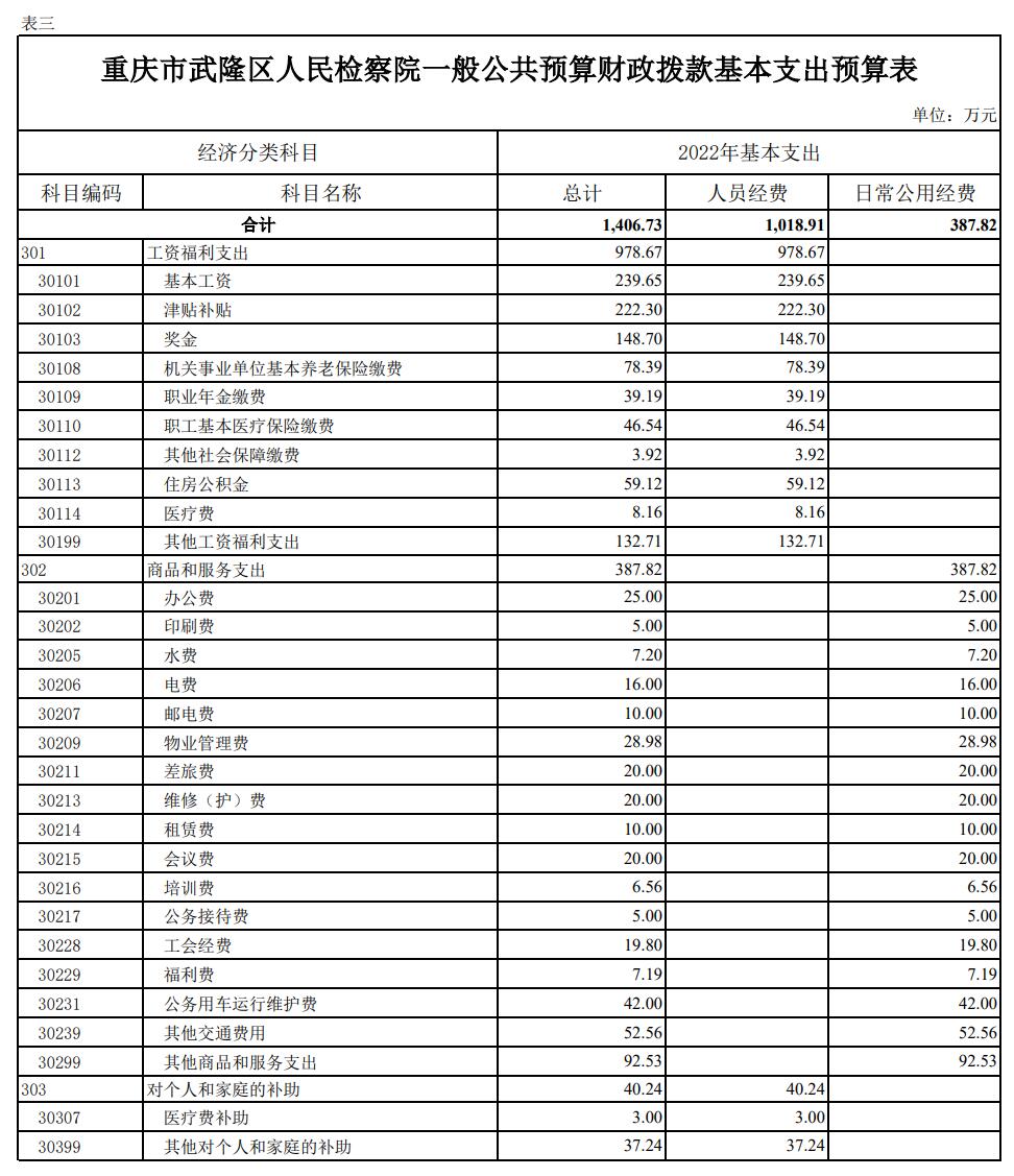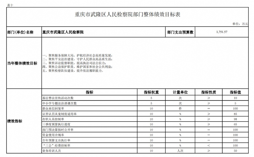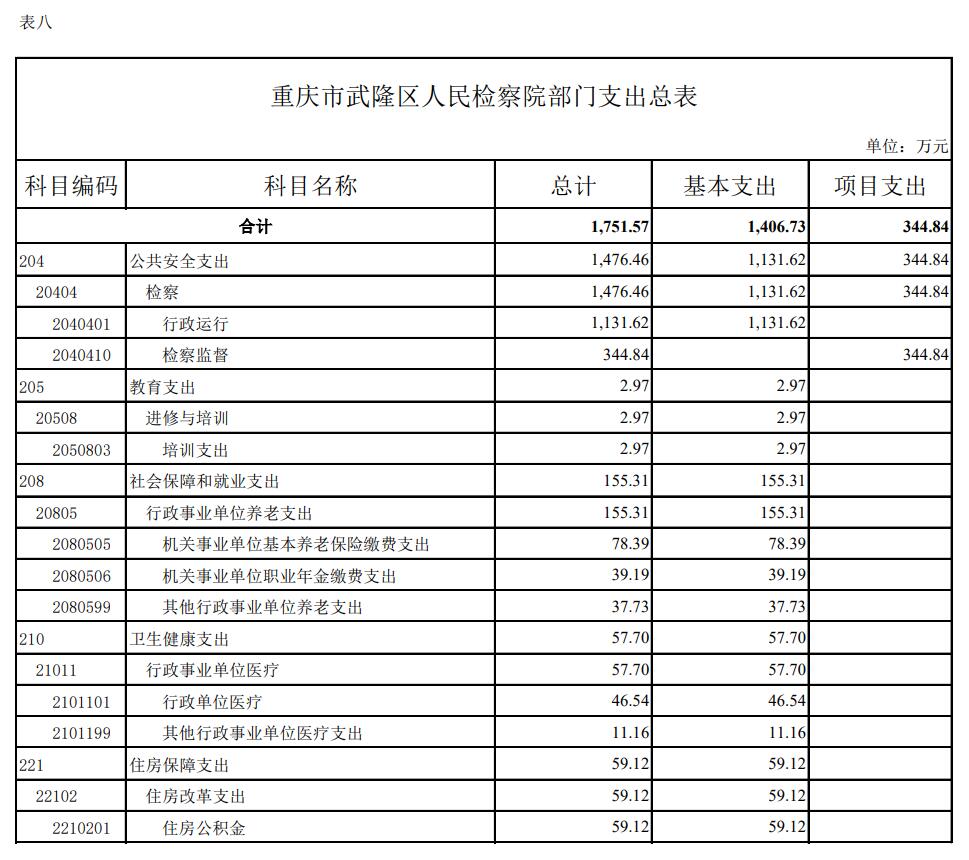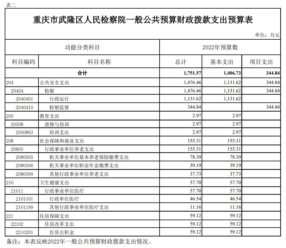 重庆市武隆区人民检察院2022年部门预算情况说明