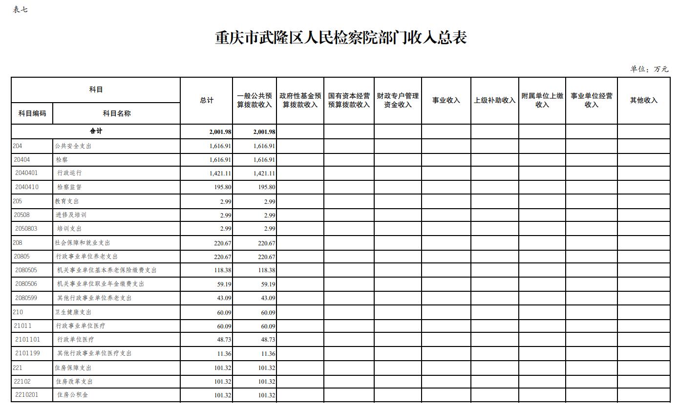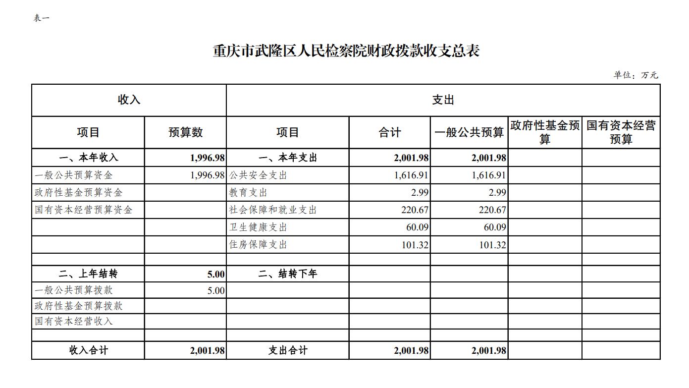 2023年一般公共预算财政拨款收入2001.98万元,一般公共预算财政拨款支出2001.98万元,比2022年增加250.41万元,其中:基本支出1806.18万元,比2022年增加399.45万元,主要原因是规范公务员津贴补贴改革后,公务员基础绩效奖和年度考核奖纳入年初预算编制等,共计增加336.1万元,主要用于保障在职人员工资福利及社会保险缴费、离休人员离休费、退休人员补助等,保障部门正常运转的各项商品服务支出;项目支出195.8万元,比2022年减少149.04万元,主要原因是原列支在项目支出的聘用制书记员先列支在基本支出,主要用于本单位的办案业务费和业务装备费等重点工作。