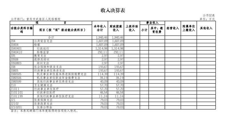 2.收入情况。2022年度收入合计1,940.46万元,较上年决算数减少13.60万元,下降0.7%,主要原因是人员经费减少,2022年年末实际在岗干警较2021年较少3人。其中:财政拨款收入1,940.46万元,占100%。此外,年初结转和结余732.08万元。