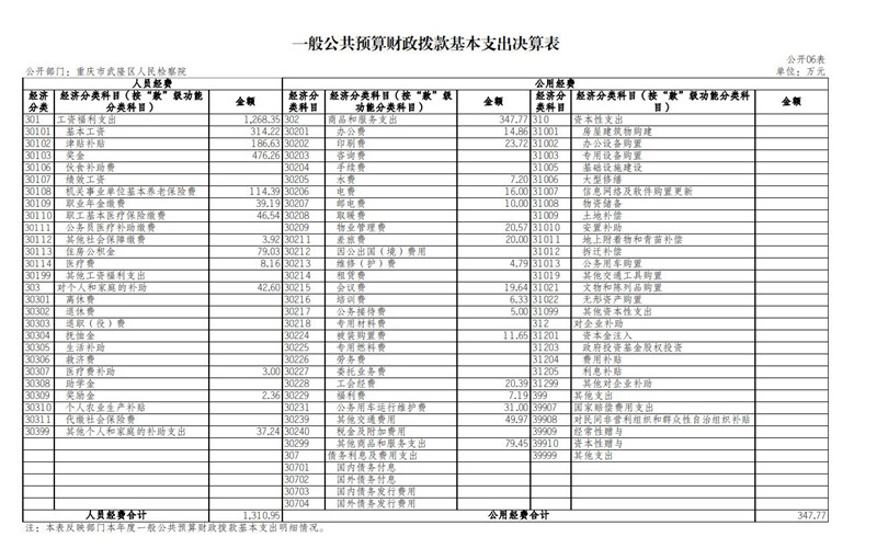 2022年度一般公共财政拨款基本支出1,658.72万元。其中:人员经费1,310.95万元,较上年决算数减少66.45万元,下降4.8%,主要原因是2022年年末实际在岗干警较2021年较少3人。人员经费用途主要包括基本工资、津贴补贴、奖金、其他社会保障缴费、机关事业部门基本养老保险、职业年金、其他工资福利支出、退休费、抚恤金、遗嘱生活补助、医疗费、住房公积金、其他对个人和家庭补助支出等支出。公用经费347.77万元,较上年决算数增加40.61万元,增长13.2%,主要原因是增加了检察服装购置费。公用经费用途主要包括公用经费用途主要包括办公费、印刷费、水费、电费、邮电费、物业管理费、差旅费、维修(护)费、租赁费、会议费、培训费、公务接待费、劳务费、工会经费、福利费、公务用车运行维护费、被装购置费、其他交通费、其他商品服务支出、日常办公设备购置费。