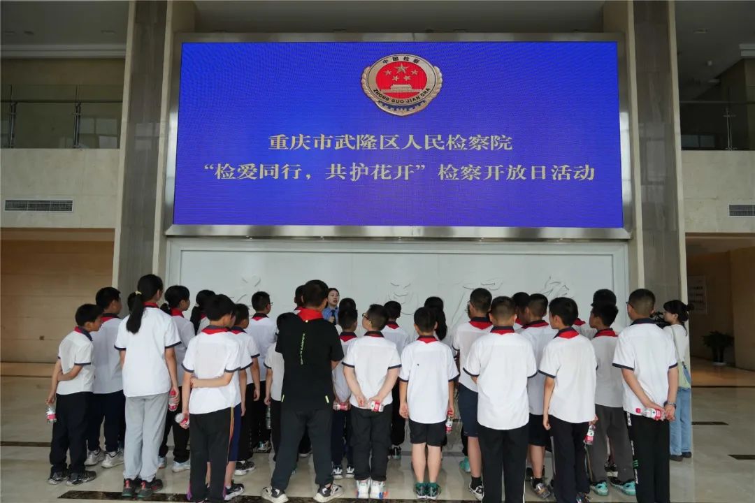 在“六一”国际儿童节来临之际,武隆区检察院通过“请进来”“走出去”的方式,开展“检爱同行,共护花开”检察开放日活动,邀请30余名武隆区实验二小学生及家长代表走进检察院大楼,为孩子们送上一份特别的“六一”礼物。活动还邀请了市人大代表、政协委员、人民监督员等,为做好武隆区未成年人检察工作建言献策。