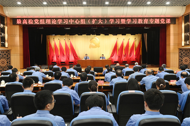6月26日,最高人民检察院举行党组理论学习中心组(扩大)学习暨深入贯彻中央八项规定精神学习教育专题党课。