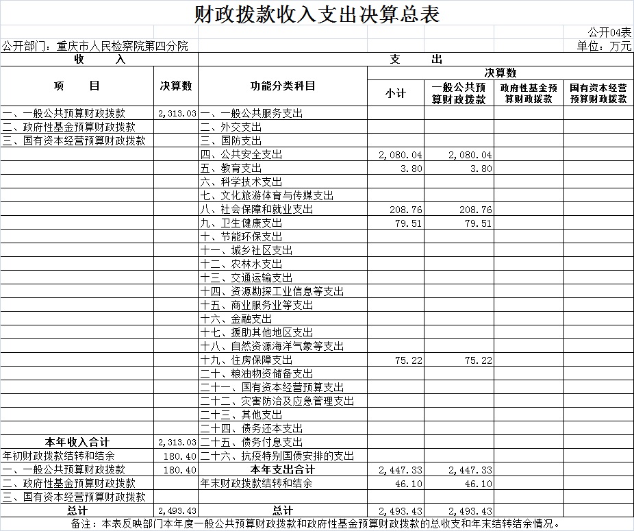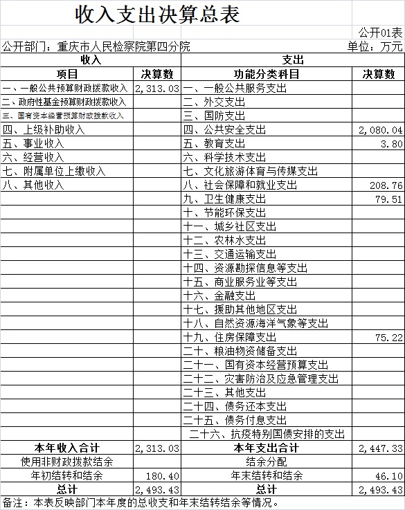 2020 年度财政拨款收、支总计2,493.43万元。与2019年相比,财政拨款收、支总计各减少248.1万 元,下降9.0%。主要原因一是新增了2019年退休健康休养费、2019年目标绩效奖、退休“中人”一次性退休补贴、房屋及消防设施维修、弥补2020年办案业务费不足等指标,二是是落实市政府“紧日子十条”规定,政策性压减了一般性项目支出,减少了公车购置经费、培训费等项目经费,清算收回了社保缴费及公积金指标。