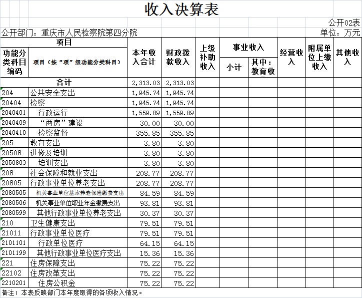 1.收入情况。2020 年度一般公共预算财政拨款收入2,313.03万元,较上年决算数减少380.85万元,下降14.1%。主要原因是落实市政府“紧日子十条”规定,政策性压减了一般性项目支出,减少了公车购置经费、培训费等项目经费,清算收回了社保缴费及公积金指标。较年初预算数增加90.51万元,增长4.1%。主要原因是新增了2019年退休健康休养费、2019年目标绩效奖、退休“中人”一次性退休补贴、房屋及消防设施维修、弥补2020年办案业务费不足等指标。此外,年初财政拨款结转和结余180.4万元。