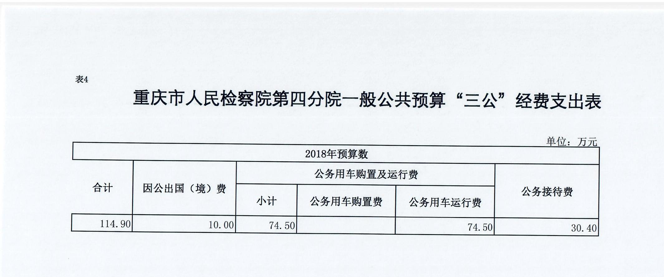 2018年“三公”经费预算114.9万元,比2017年增加0.4万元。其中:因公出国(境)费用10万元,与上年持平;公务接待费30.4万元,与上年持平;公务用车运行维护费74.5万元,比2017增加0.4万元;公务用车购置费0万元,与上年持平。主要原因是我单位严格执行八项规定,压缩公务接待规模和次数,公务接待支出逐年下降;预计2018年公务用车运行维护费会随着办案出差次数增多略有增加。