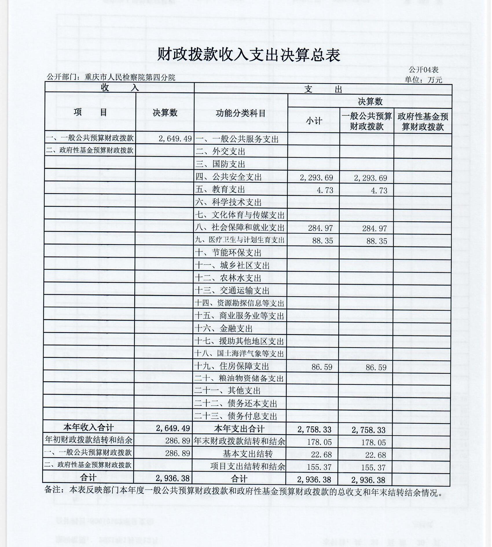 1.收入情况。本单位2018年度财政拨款收入2649.49万元,较上年决算数减少150.09万元,下降5.36%。根据国家监察体制改革要求,本单位职侦转隶人员划转出12人到市监察委,年中收入指标划转98.73万元到市监察委,人员减少也导致办案经费和油料费、水电费、食堂等公用经费减少。较年初预算数增加198.14万元,增长8.08%。主要原因是新增了2017年政府目标绩效奖、2017年退休健康休养费、2018年调资资金等事项、人民警察法定工作日外加班补贴、退休“中人”一次性退休补贴等。财政部门预算调整文件号:重财行[2018]第000040、重财行[2018]第000283、重财行[2018]第000043、重财行[2018]第000105、重财行[2018]第000588等。此外,年初财政拨款结转和结余286.89万元。