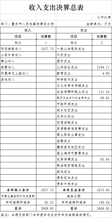 本部门2016年度收入总计(含年初结转结余)2,609.95万元,支出总计(含年末结转结余)2,609.95万元。与2015年决算数相比,收支增加61.18万元,增长2.40%,主要原因是财政指标调整及人员增加。