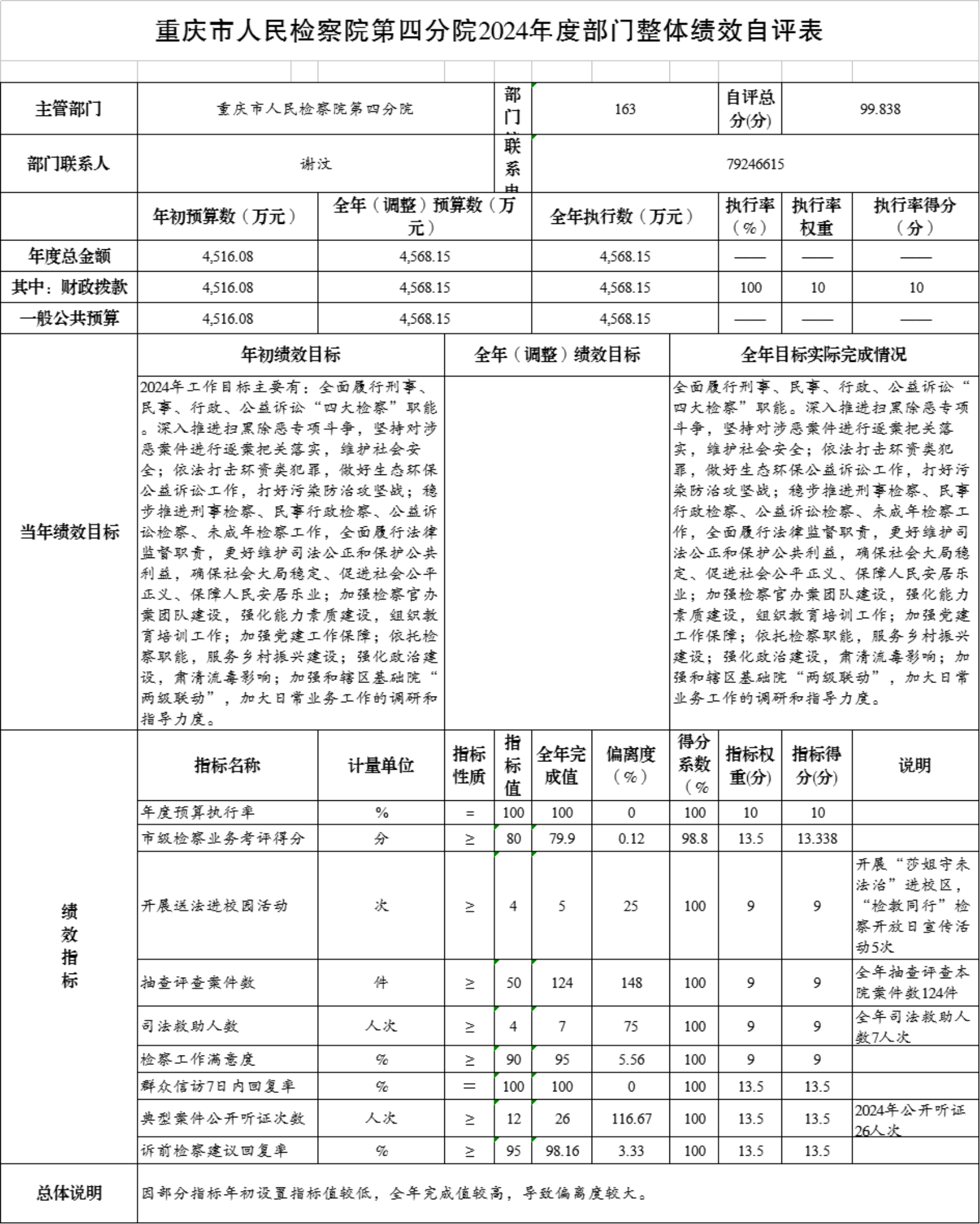 2024年度收、支总计均为4638.24万元。收、支与2023年度相比,增加1581.32万元,增长51.73%,主要原因:一是本年度追加了职业年金政策性补缴、一次性健康休养费、退休“中人”一次性补贴、员额制绩效考核奖金、人员政策性清算等资金;二是2024年度新增了技侦大楼及附属工程经费及办案中心装修改造等一次性项目经费。