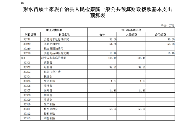 彭水苗族土家族自治县人民检察院2017年部门预算情况说明