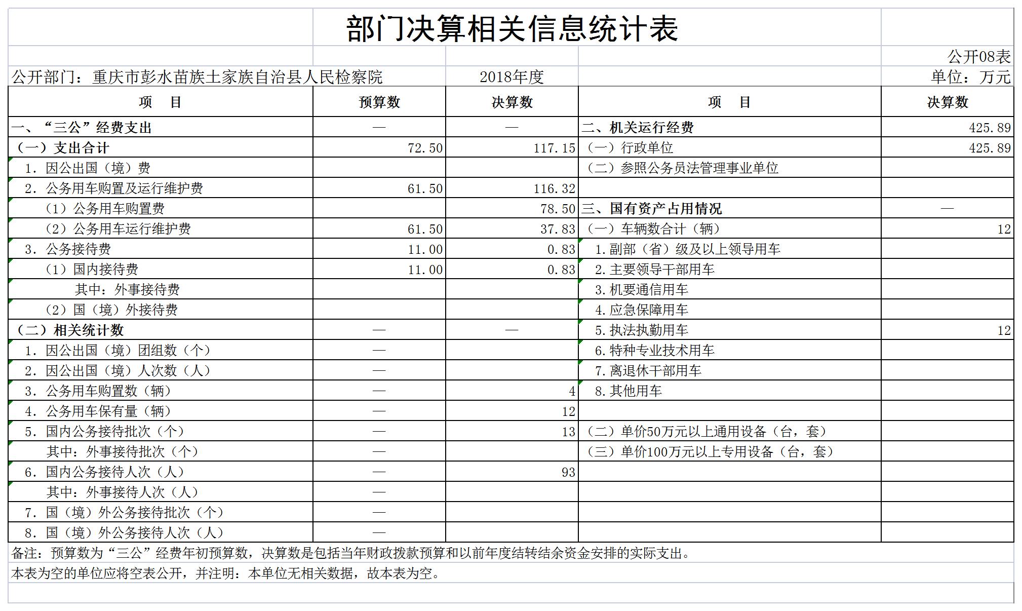 重庆市彭水苗族土家族自治县人民检察院2018年部门决算情况说明