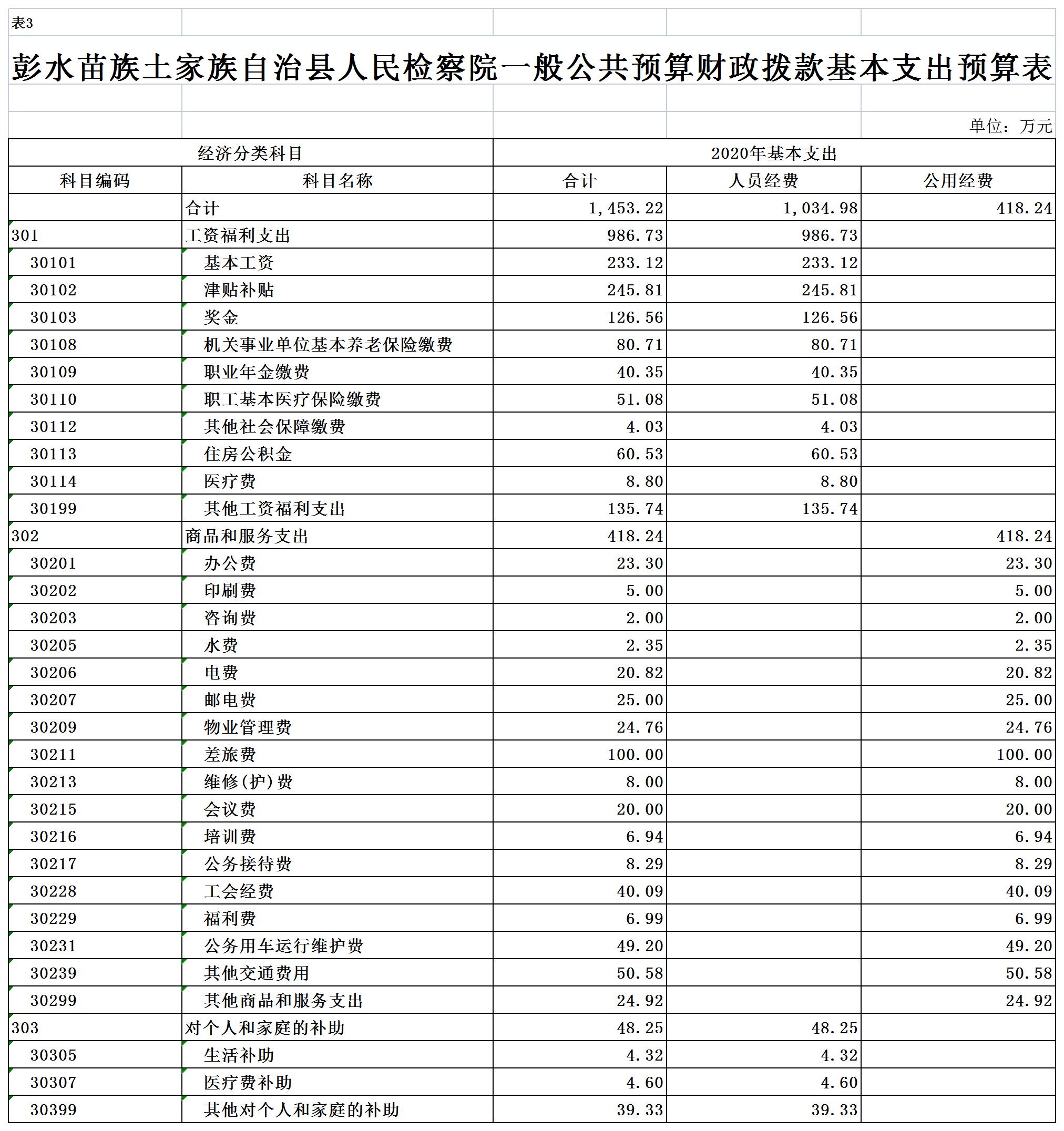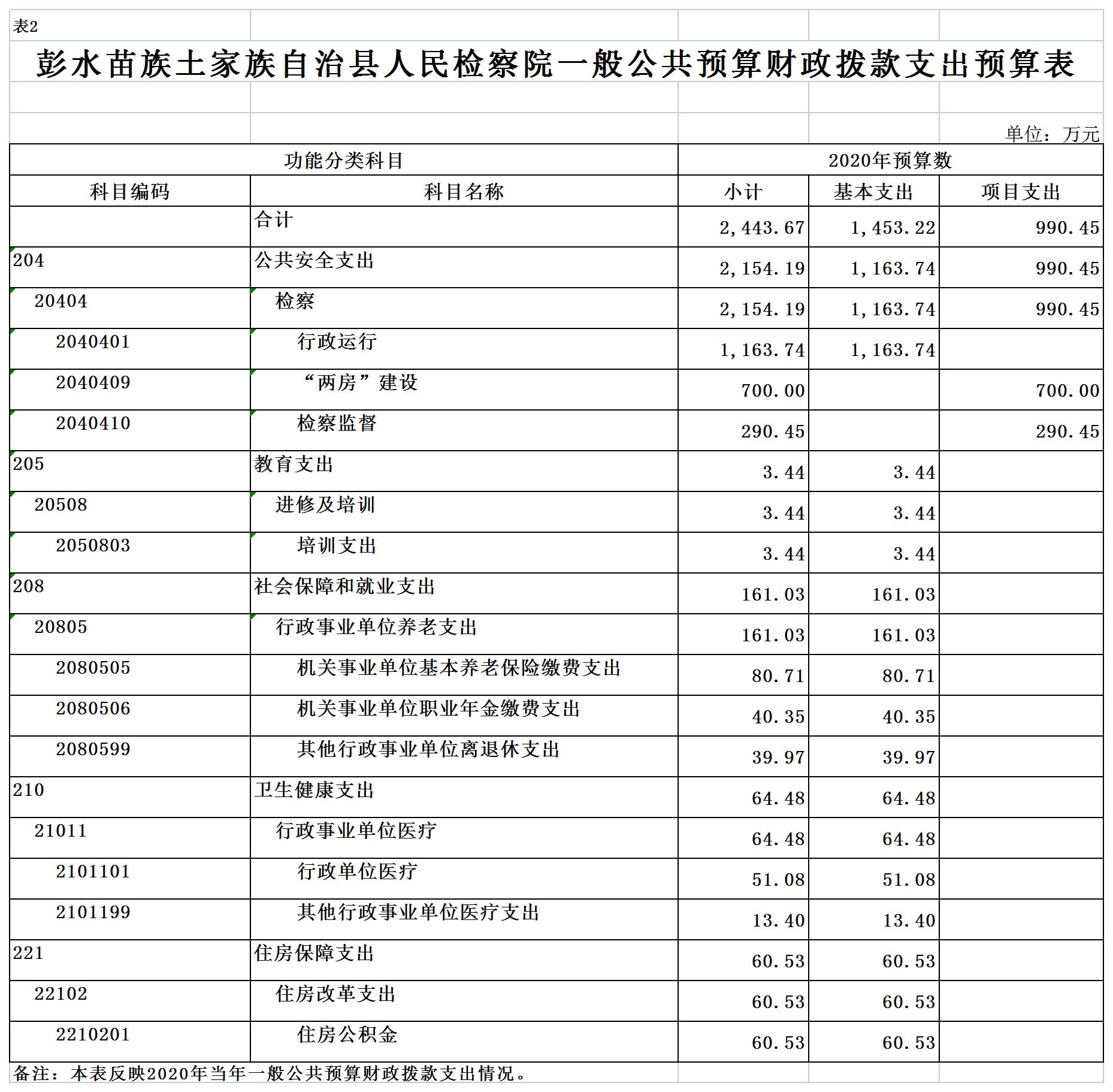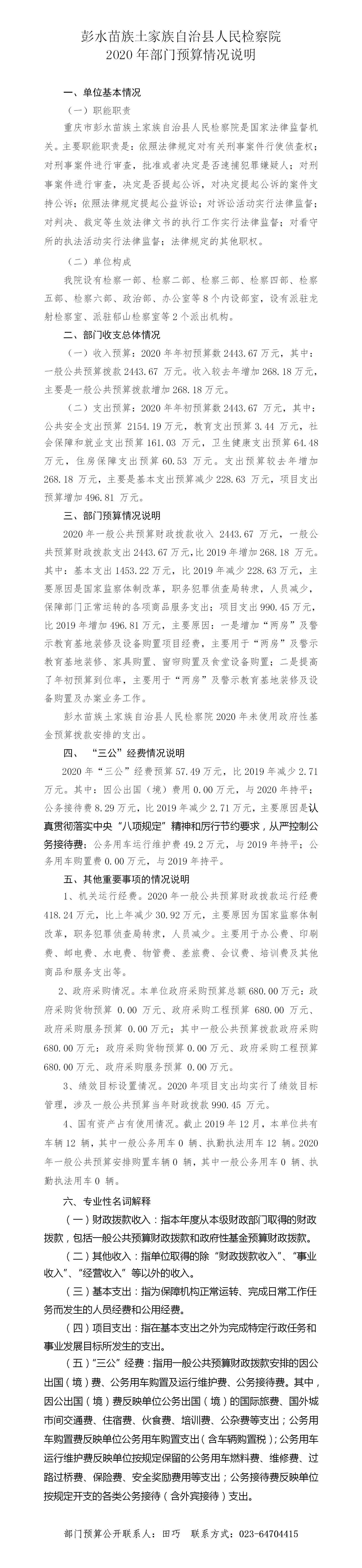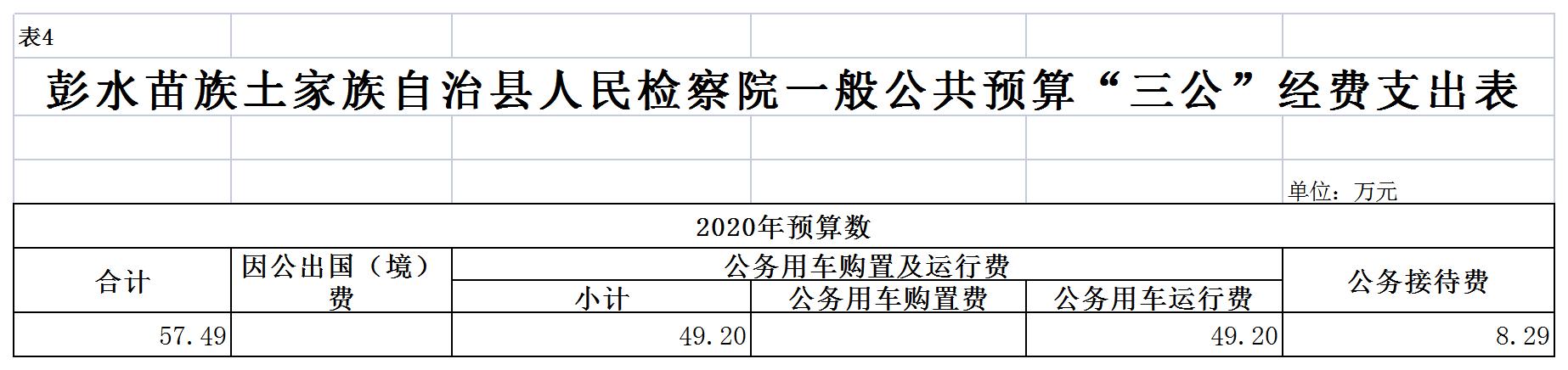 彭水苗族土家族自治县人民检察院2020年部门预算公开