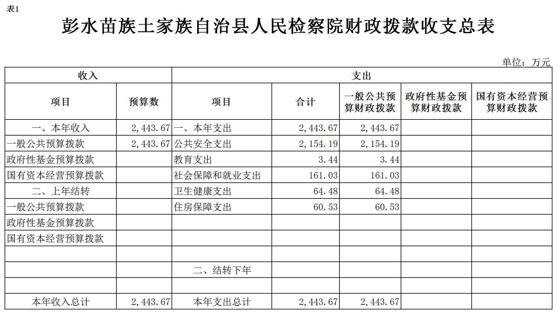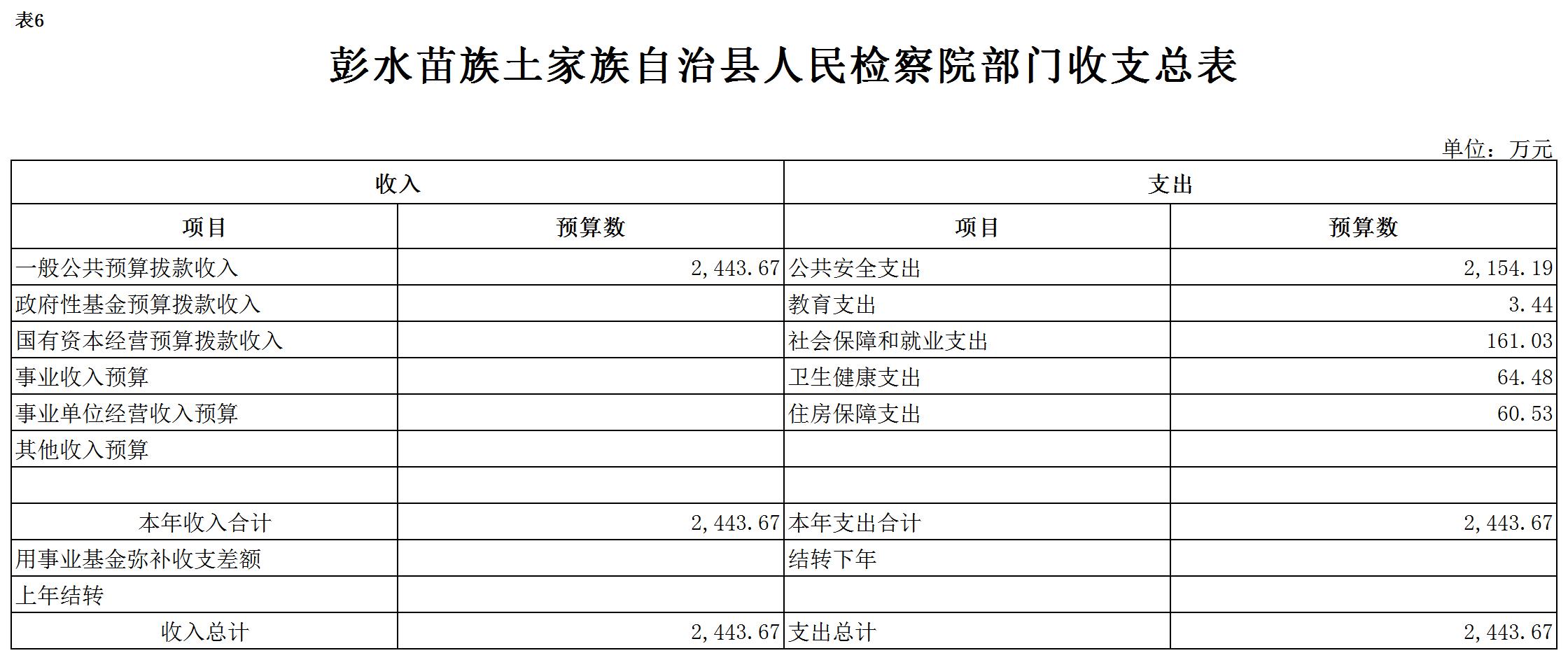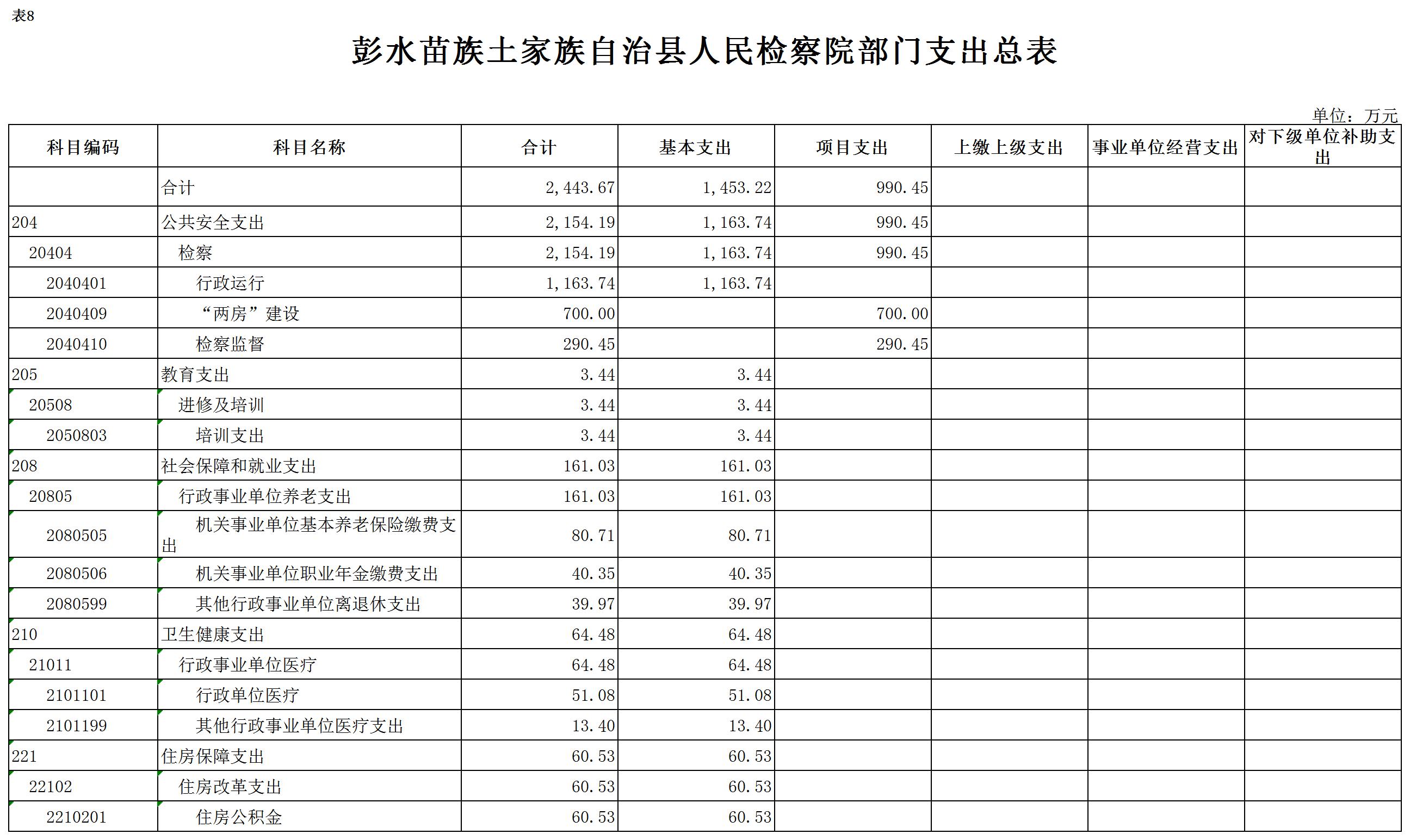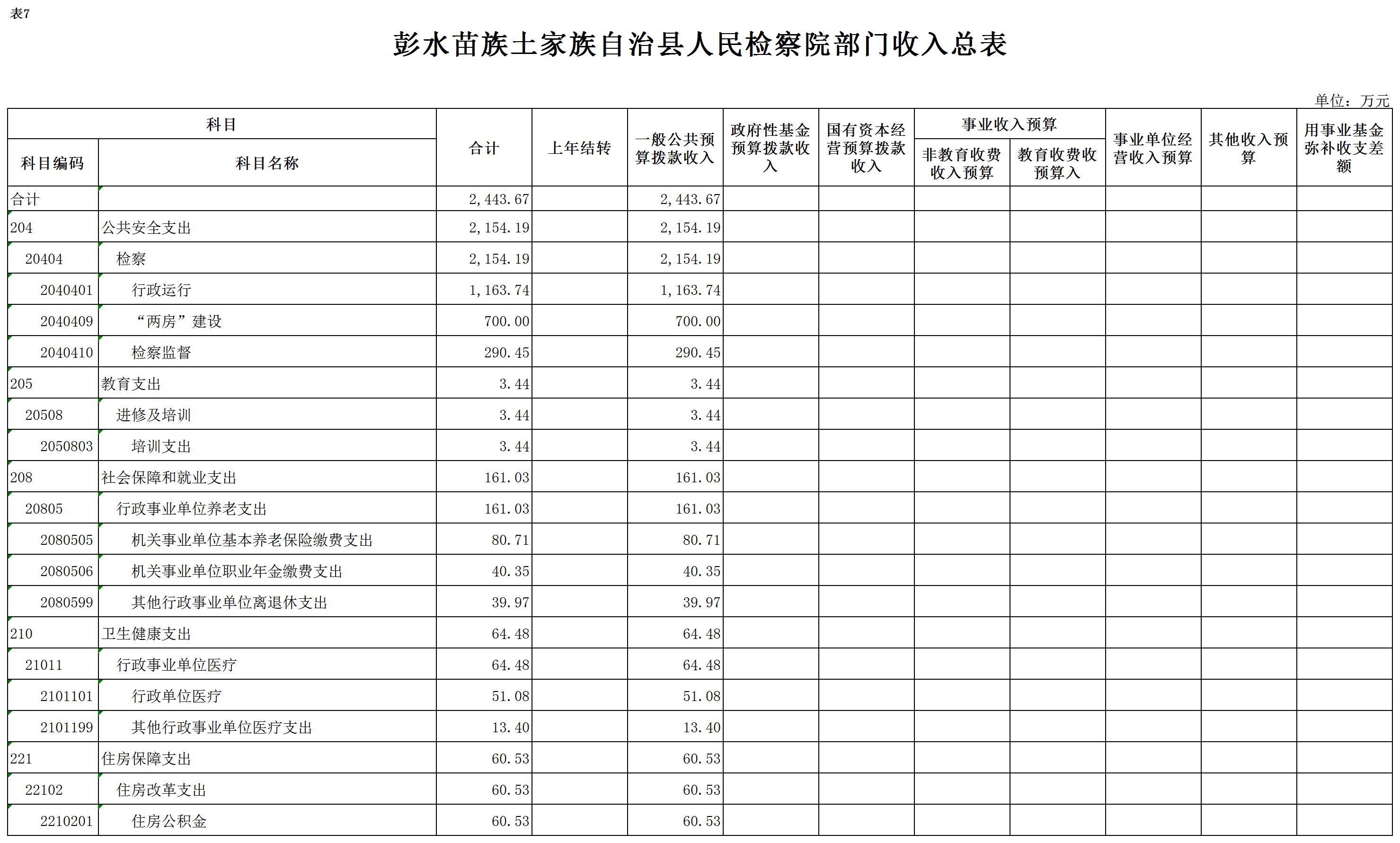 彭水苗族土家族自治县人民检察院2020年部门预算公开