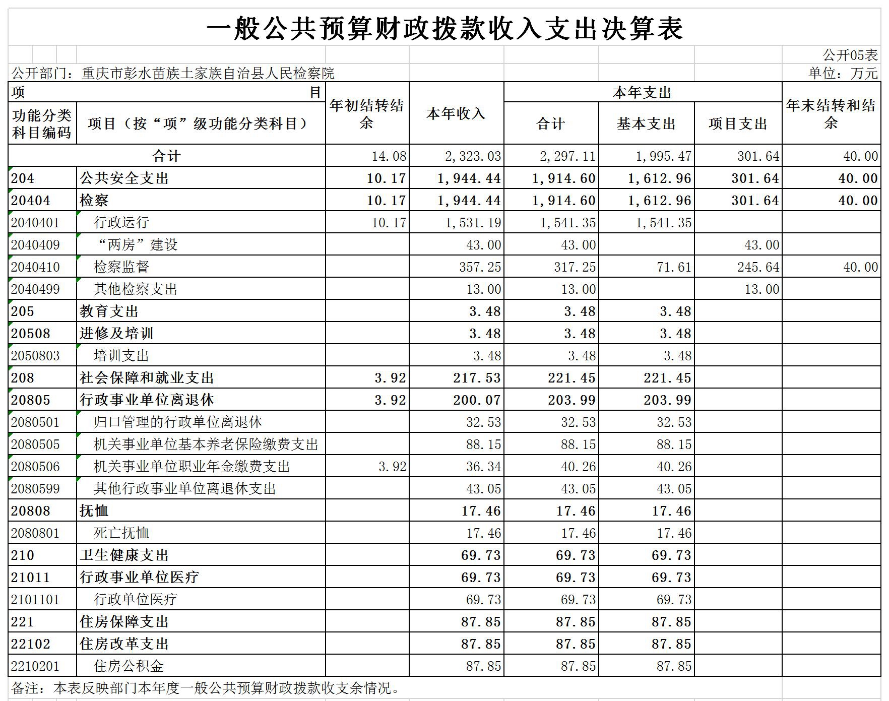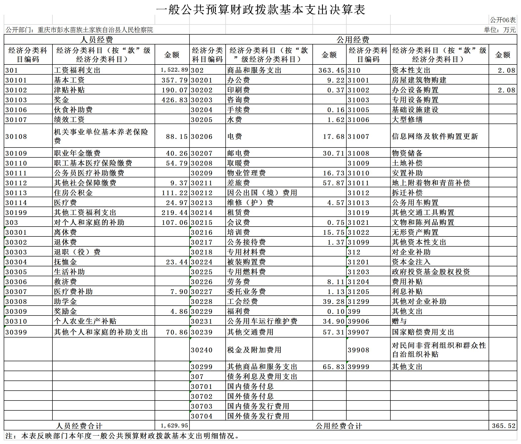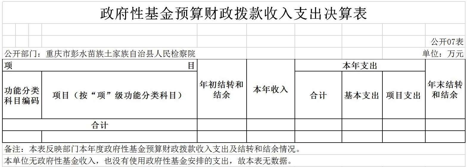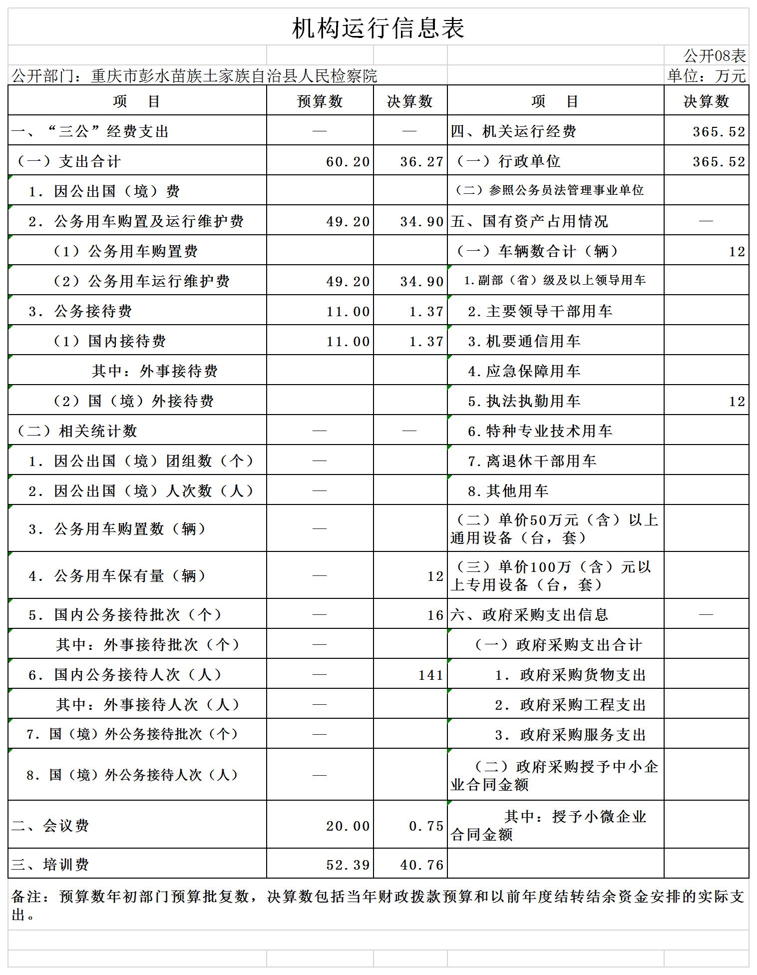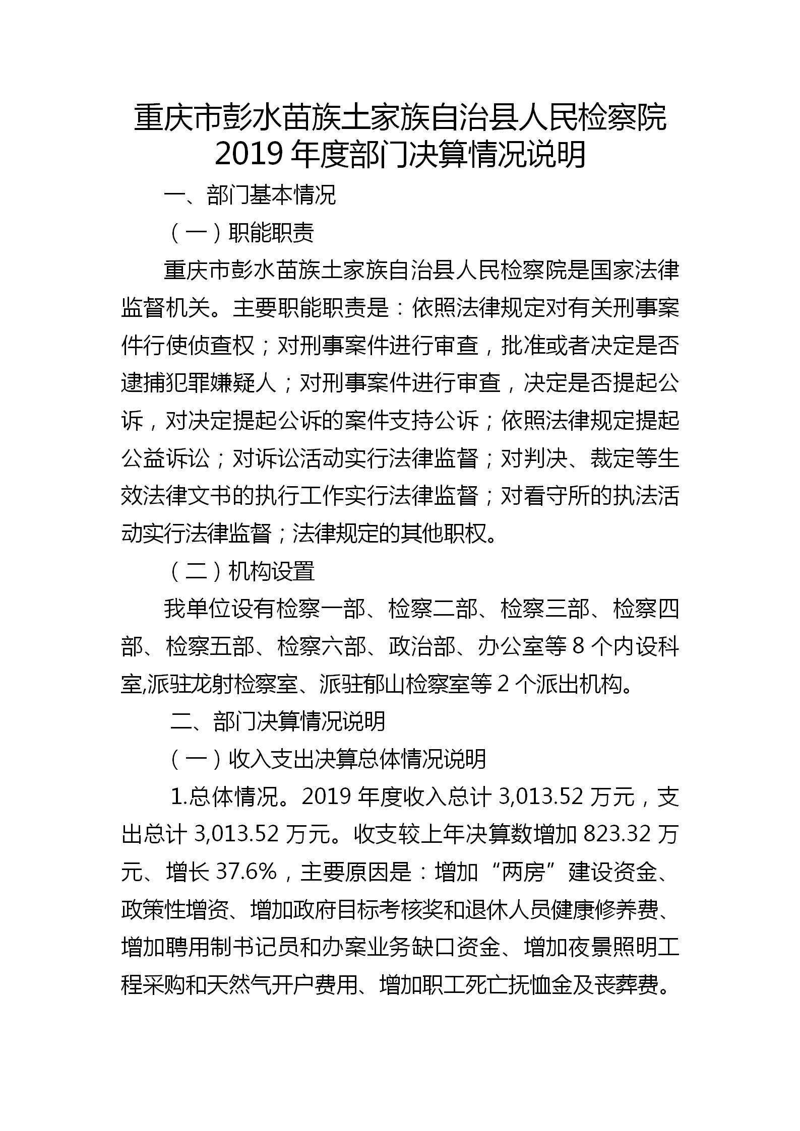 重庆市彭水苗族土家族自治县人民检察院2019年部门决算公开