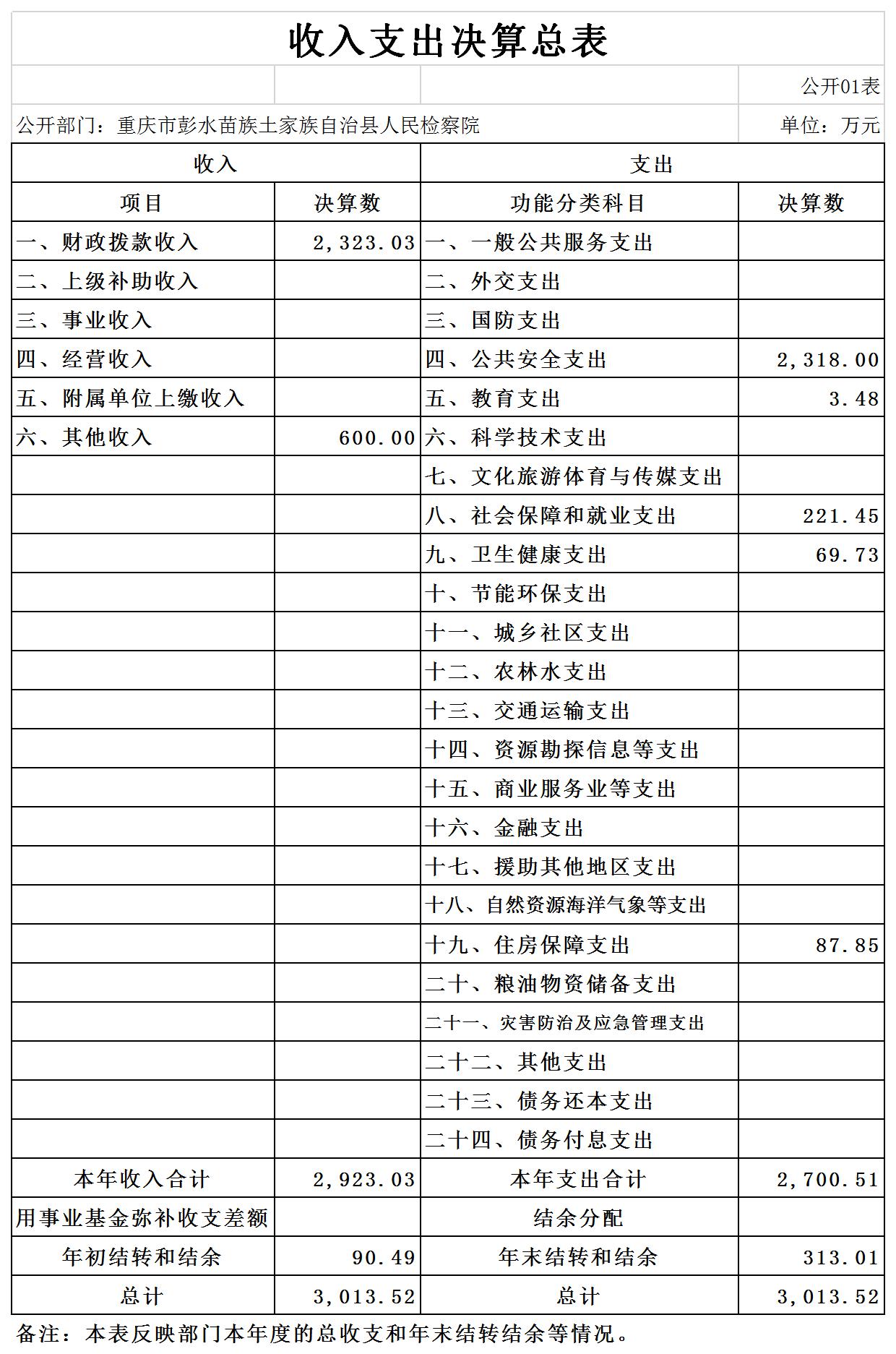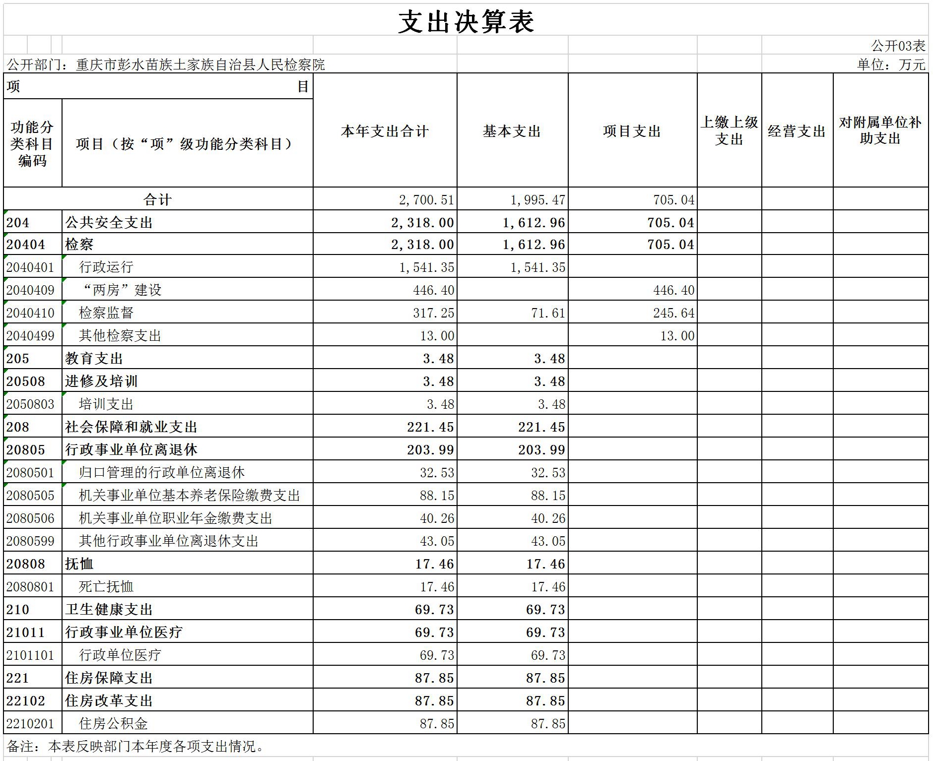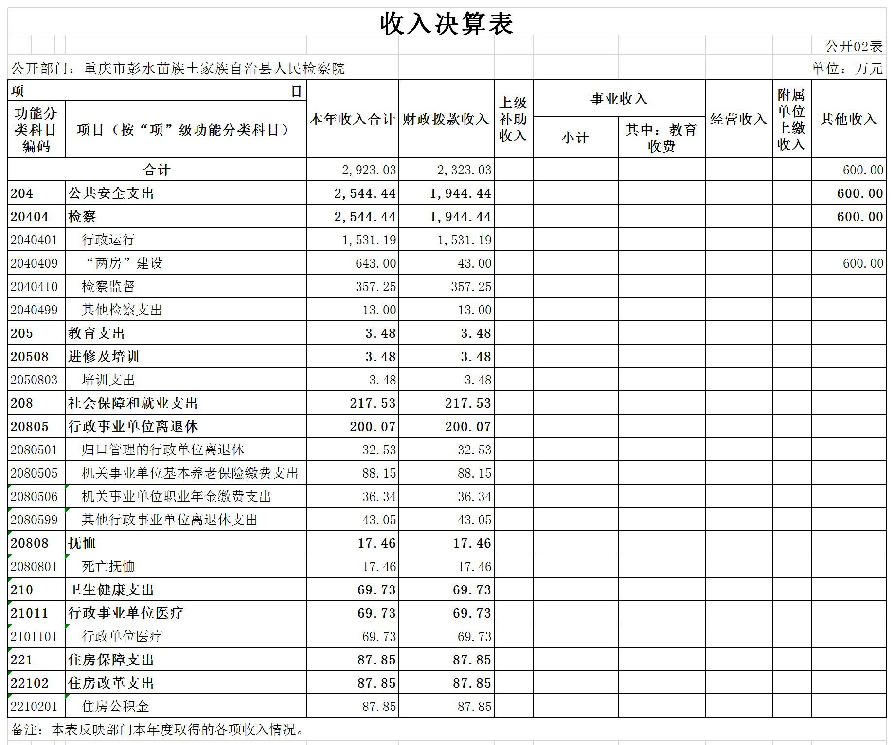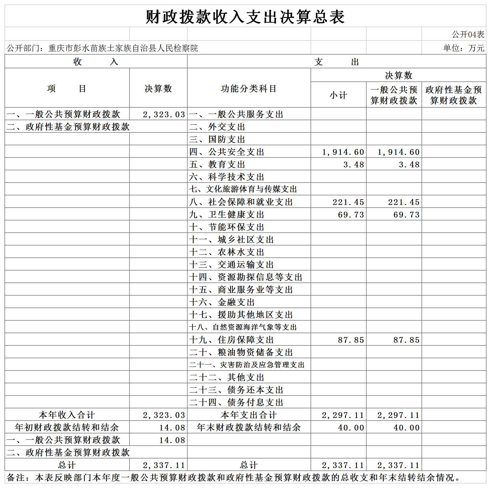 重庆市彭水苗族土家族自治县人民检察院2019年部门决算公开