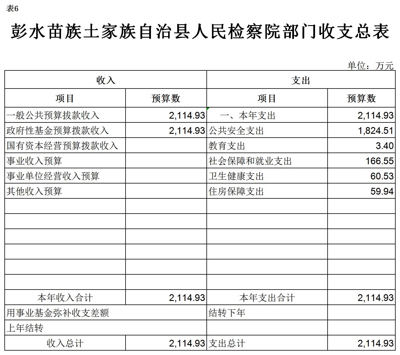 彭水苗族土家族自治县人民检察院2021年部门预算公开