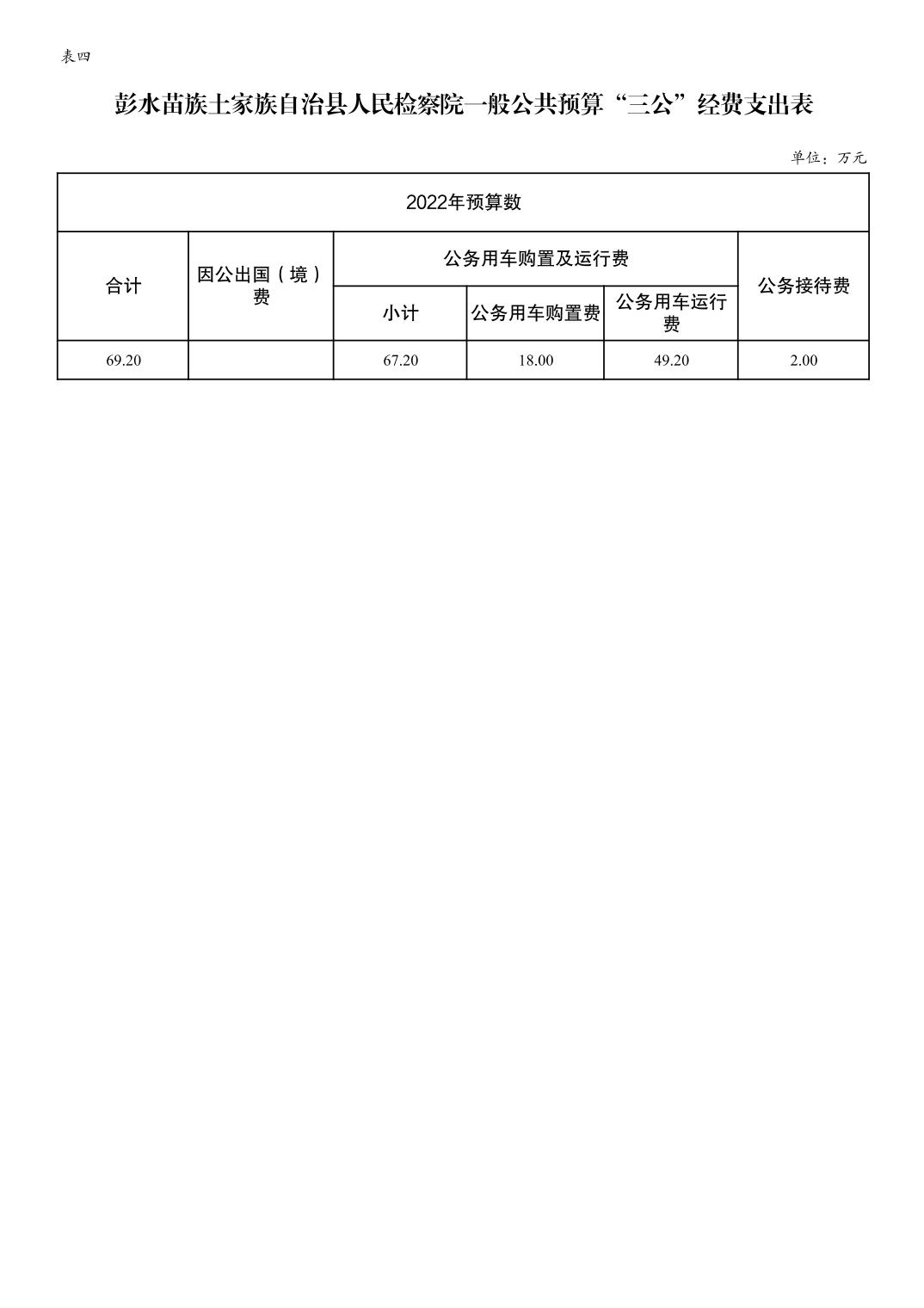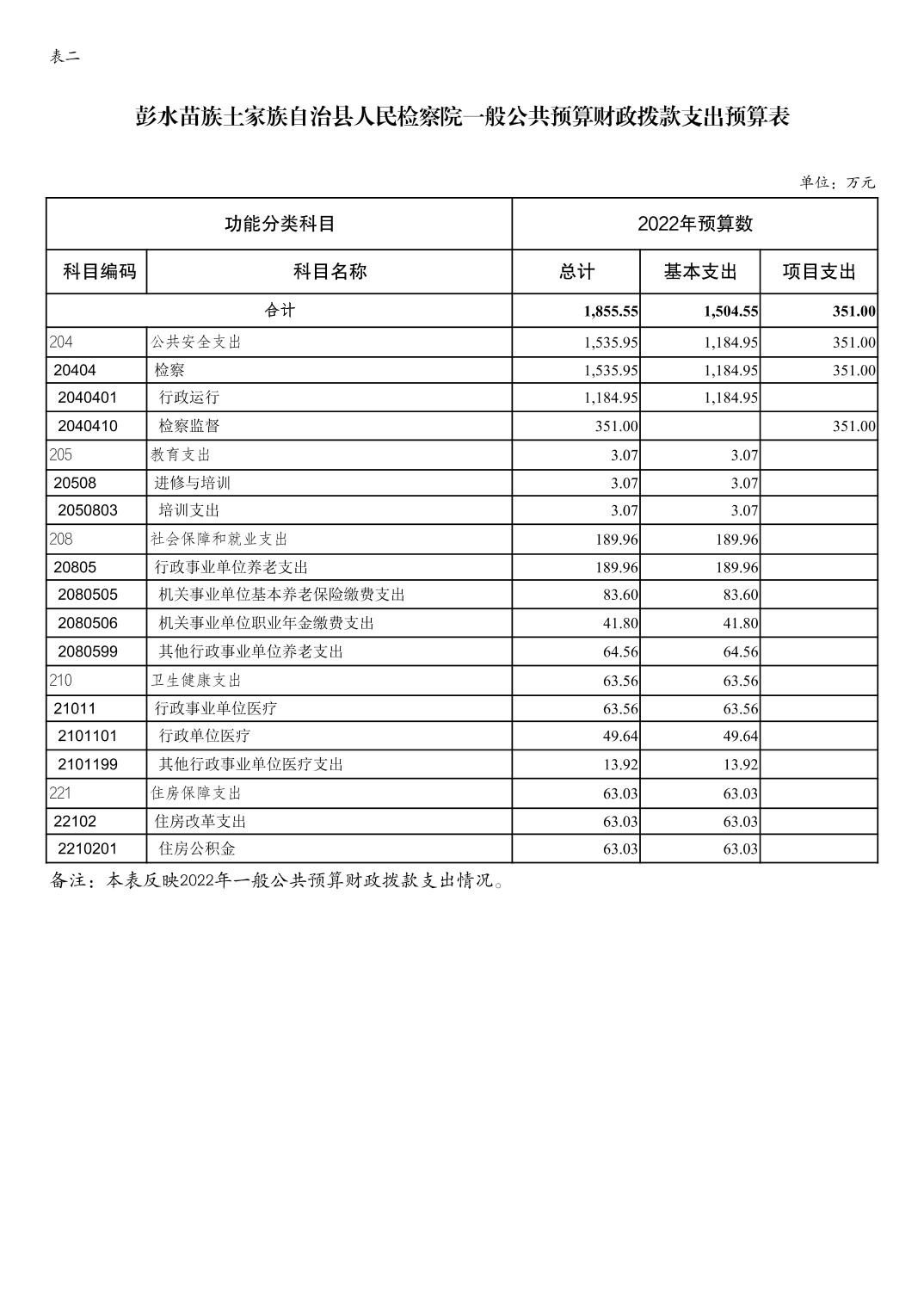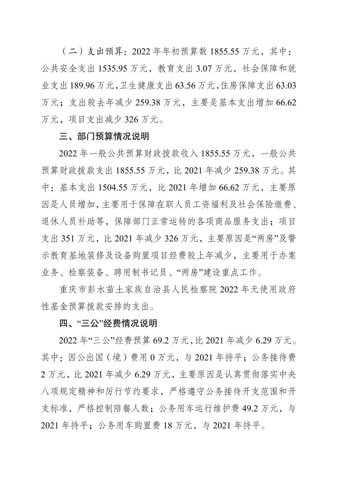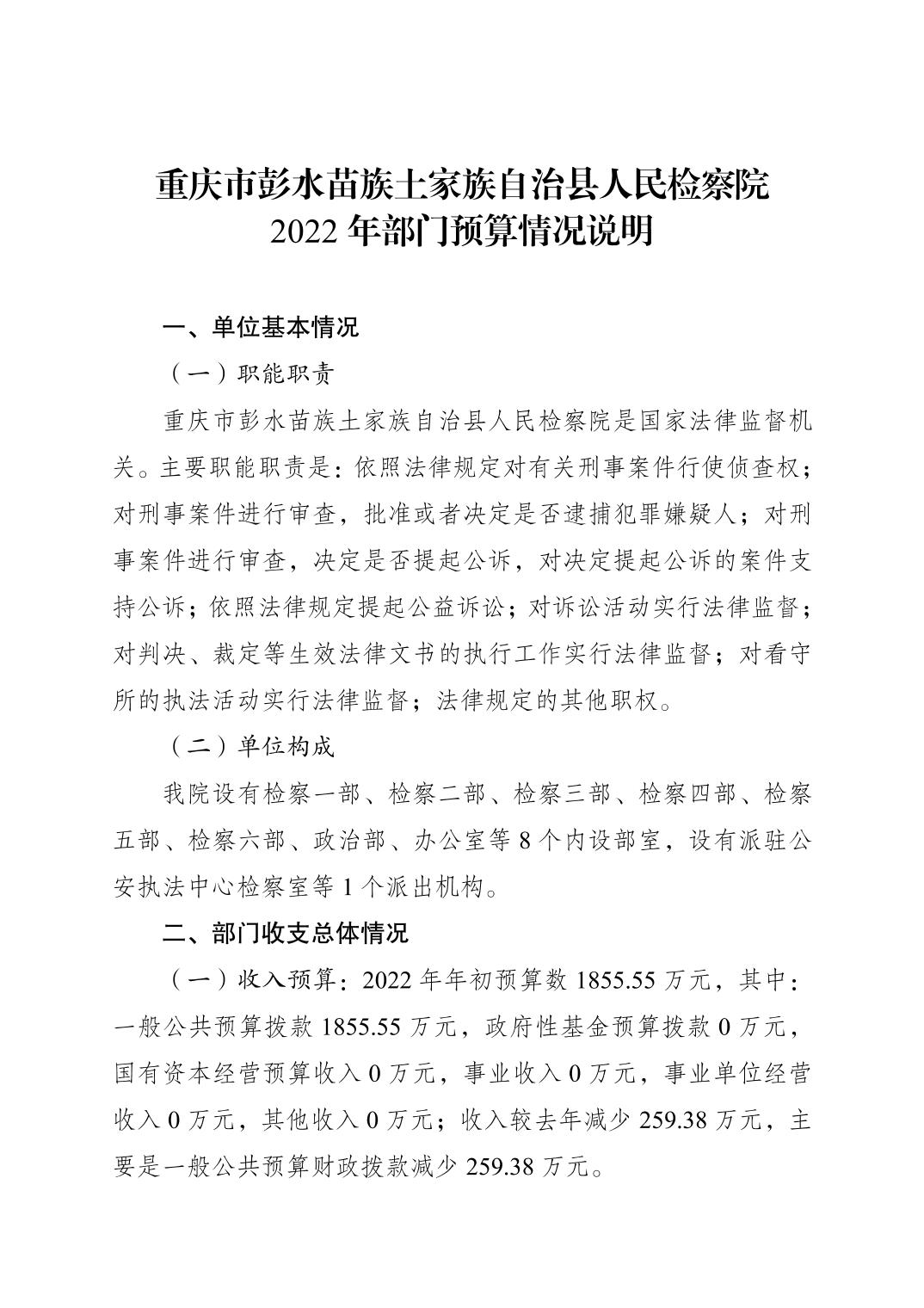重庆市彭水苗族土家族自治县人民检察院2022年部门预算公开
