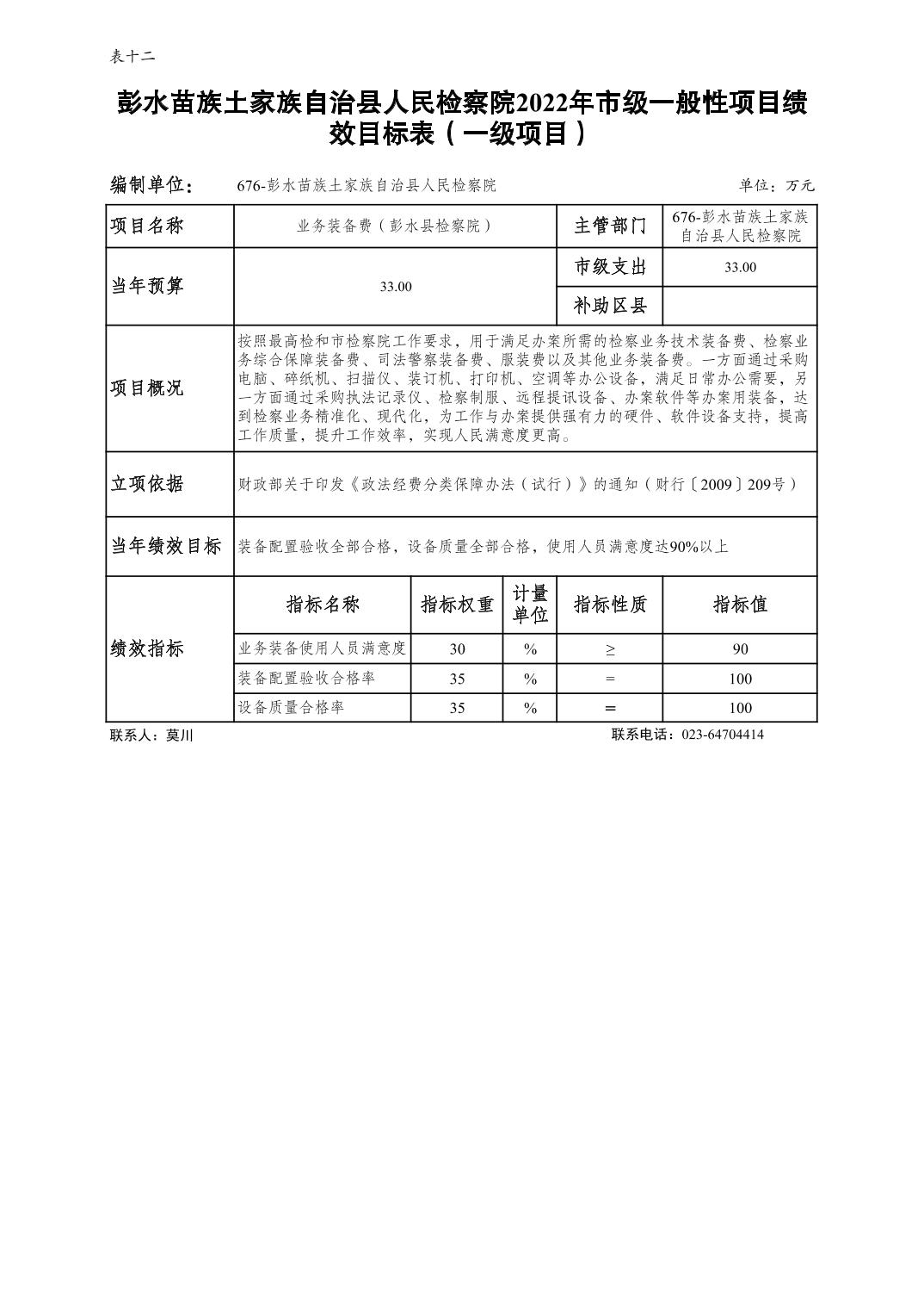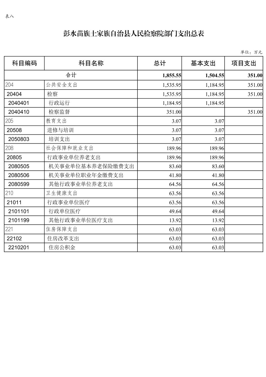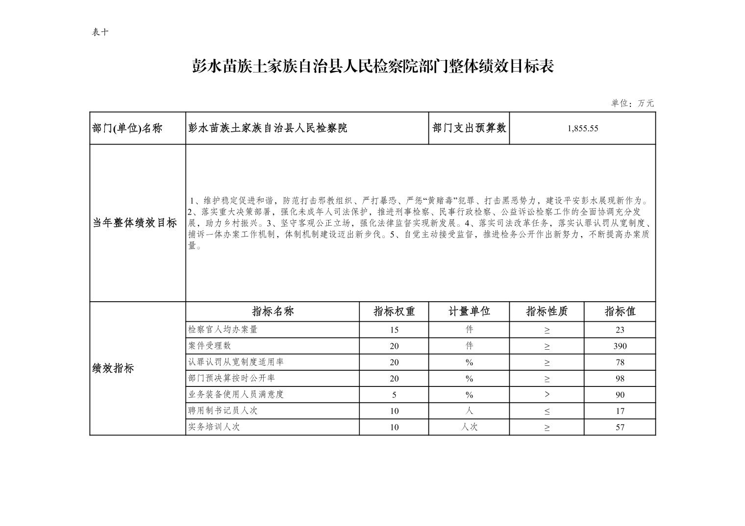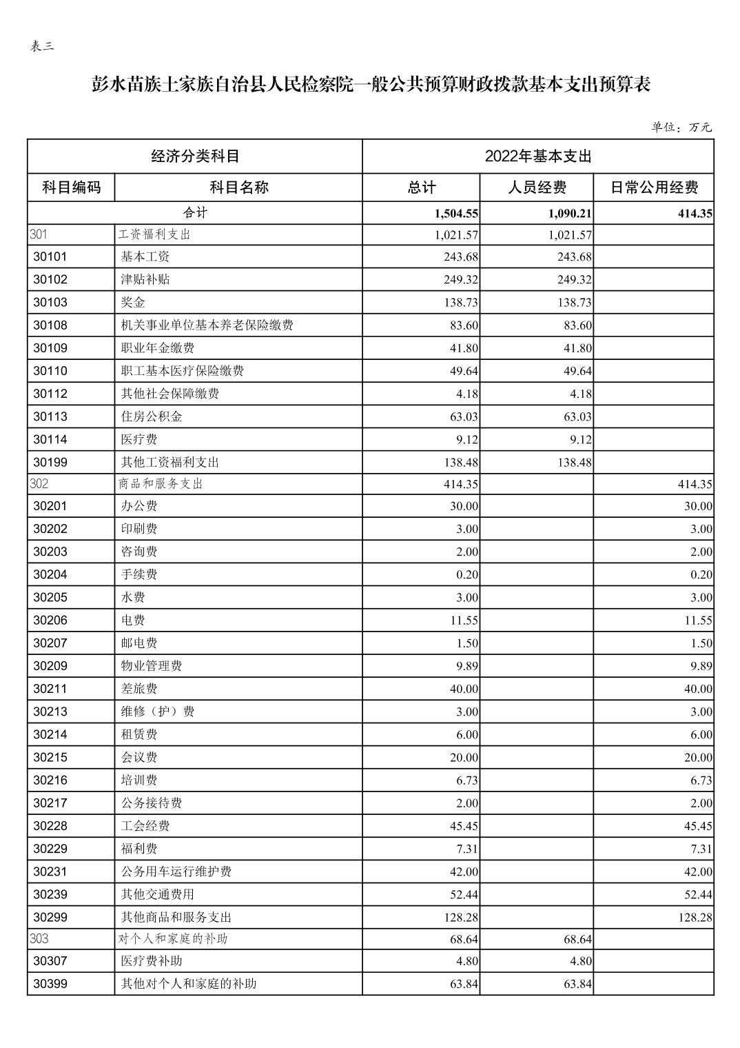 重庆市彭水苗族土家族自治县人民检察院2022年部门预算公开