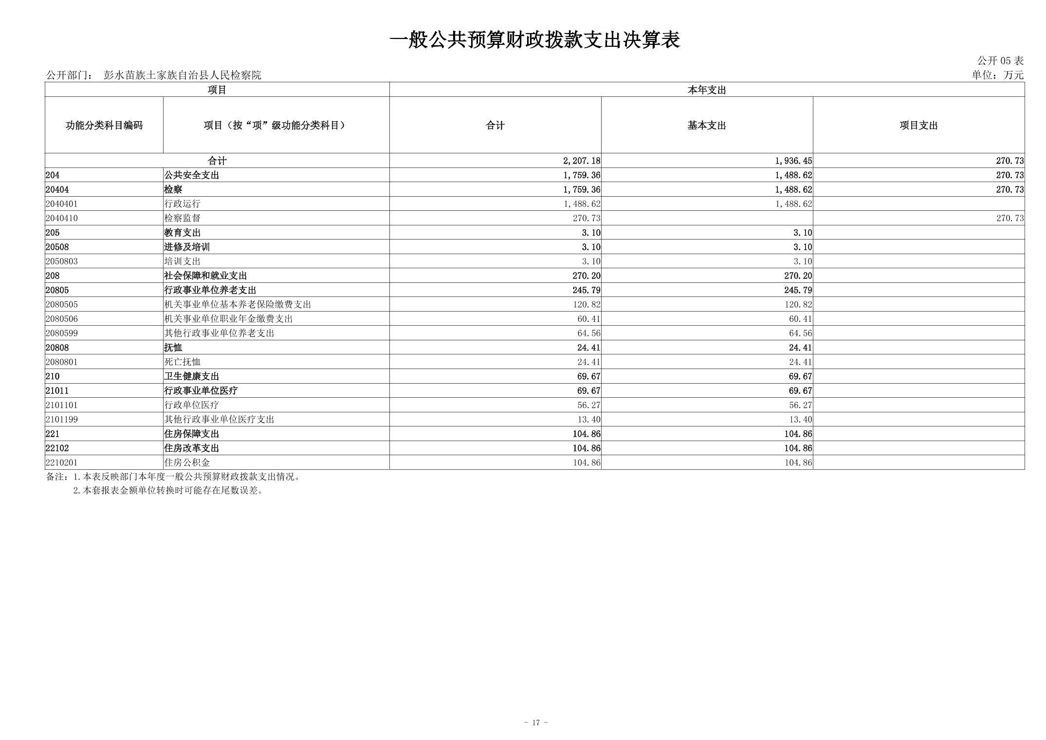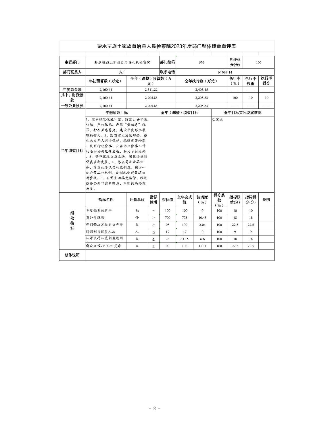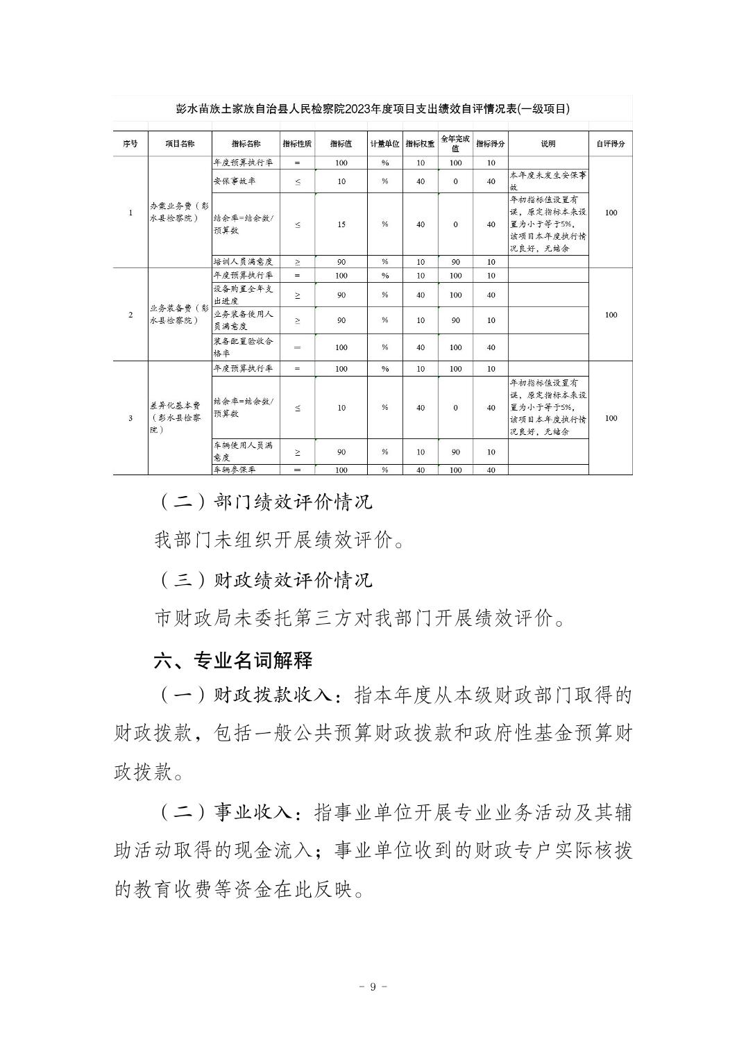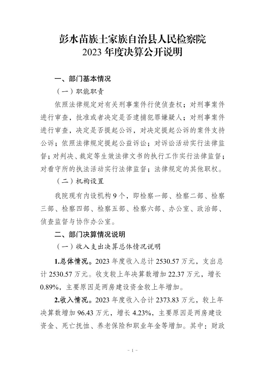 彭水苗族土家族自治县人民检察院2023年部门决算公开说明