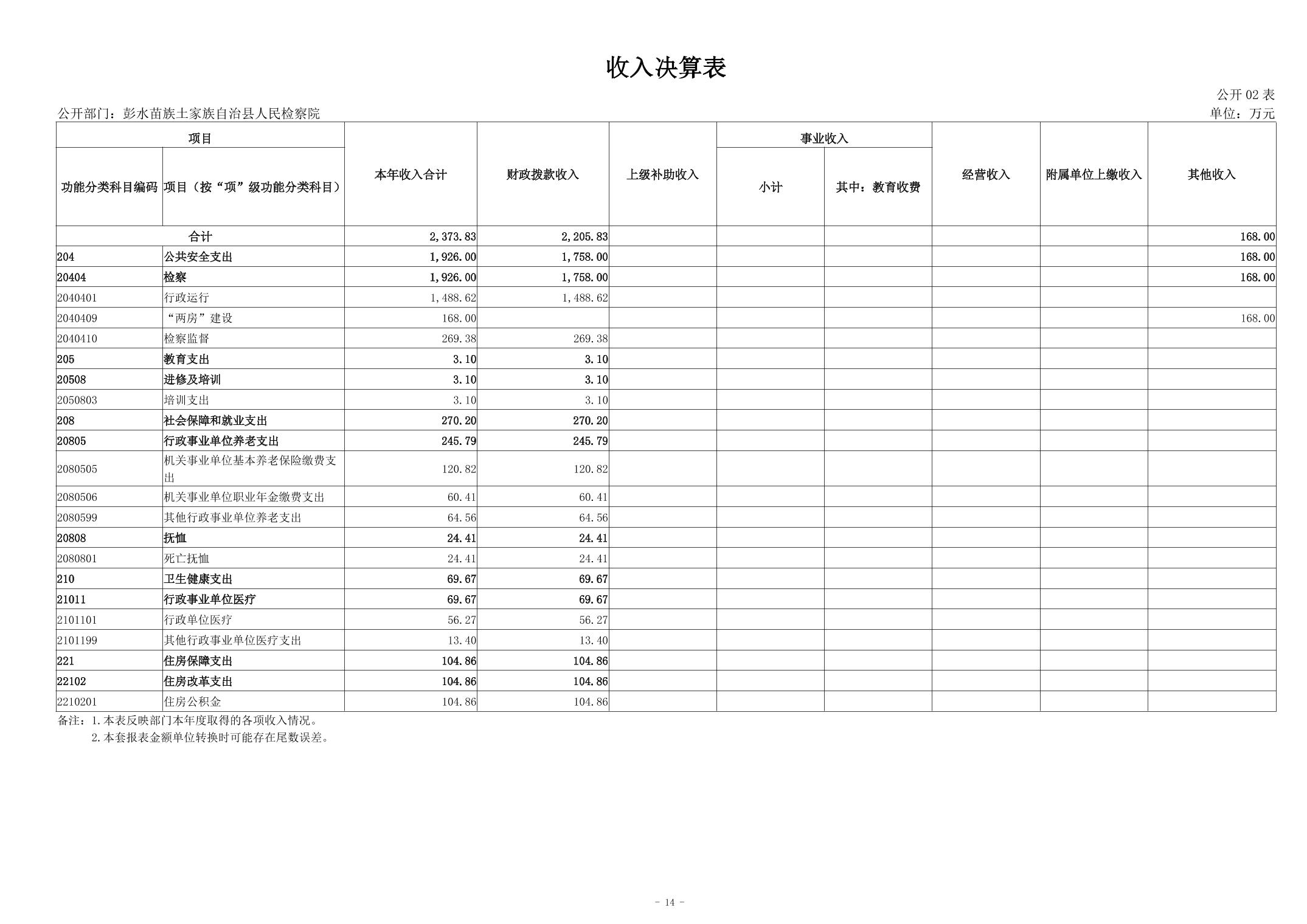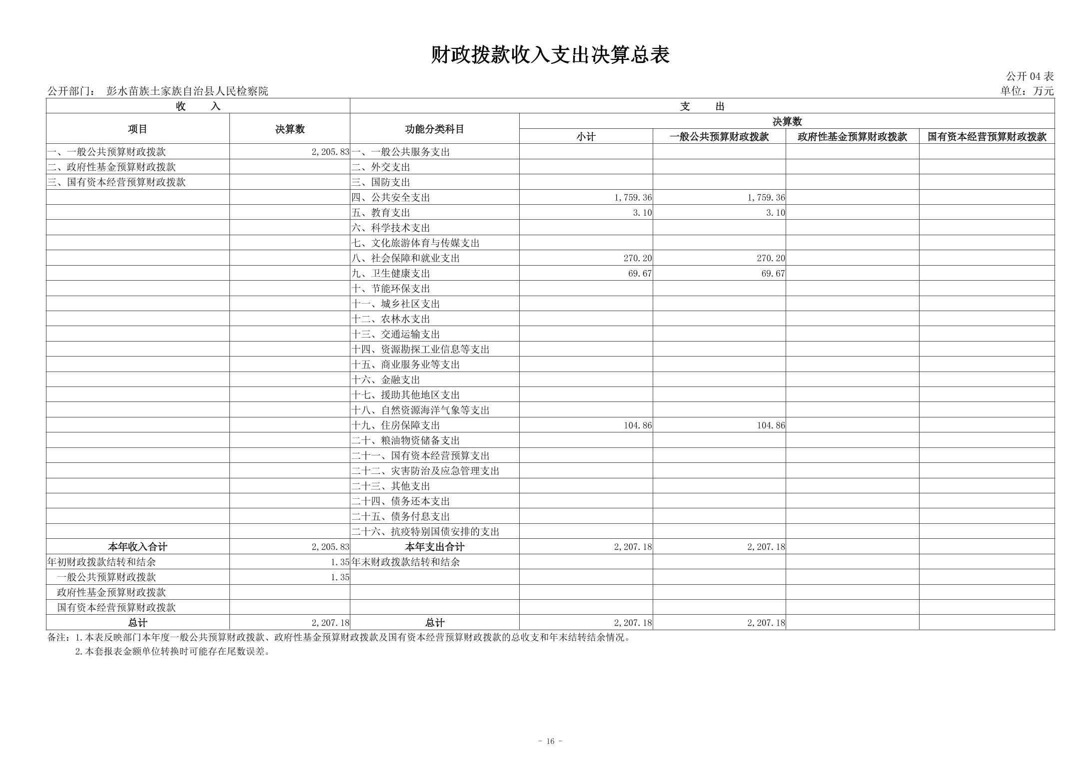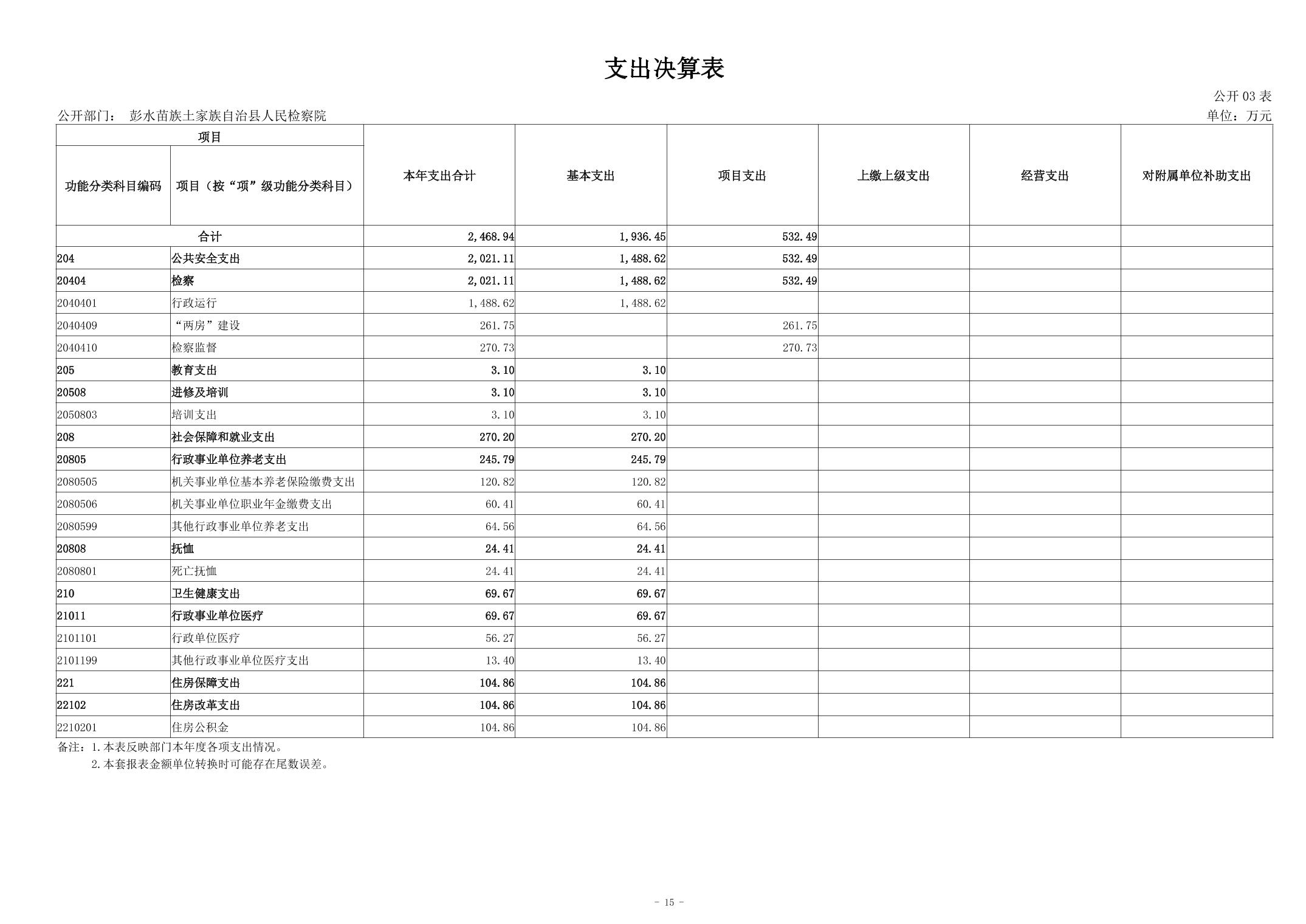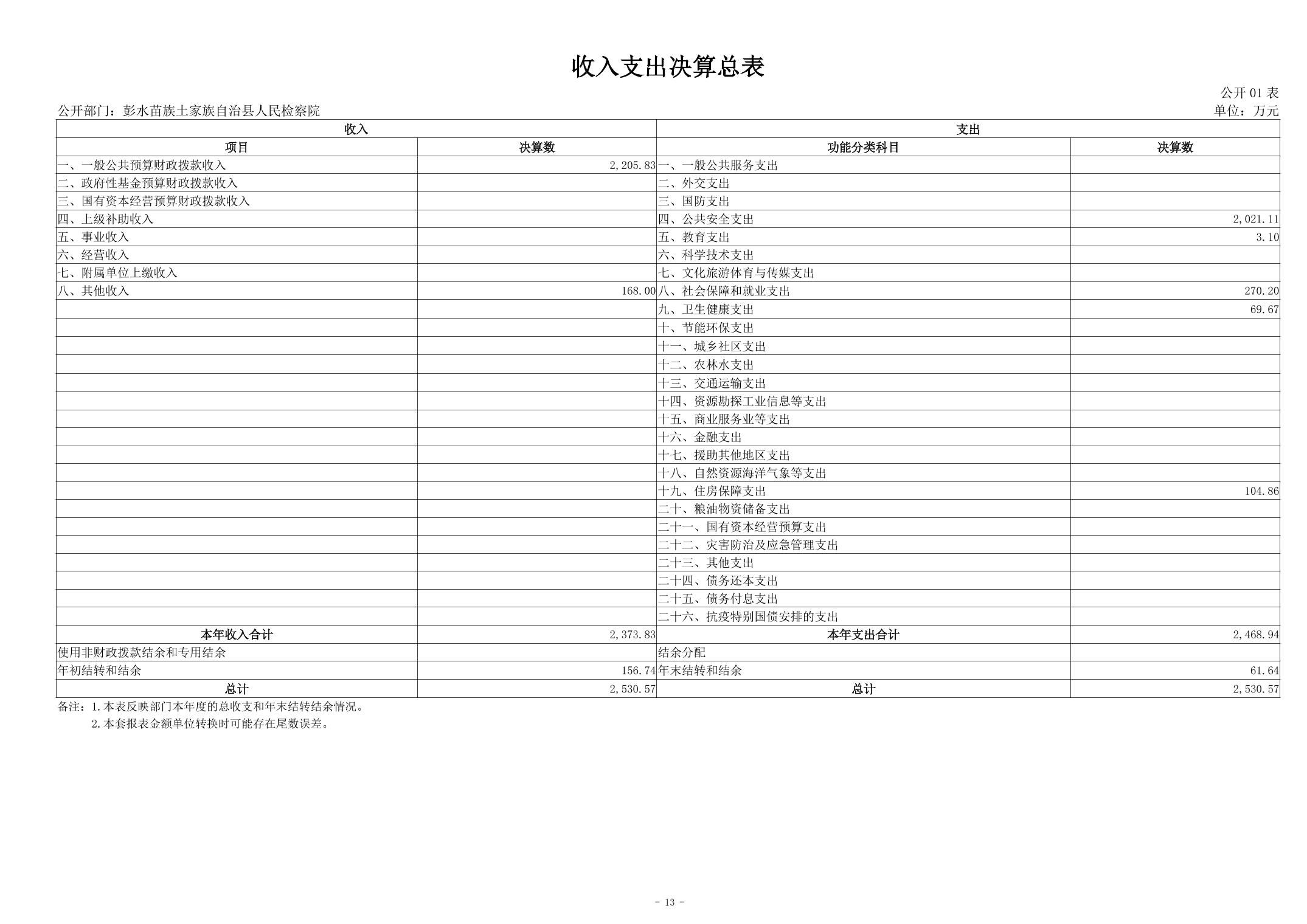 彭水苗族土家族自治县人民检察院2023年部门决算公开说明