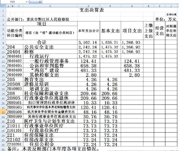 3.支出情况。本部门2018年度支出合计3,102.14万元,较上年决算数增加532.73万元,增长20.73%,主要原因是两房建设支出增加、员额制绩效增资、养老保险增加及办案劳务费、差旅费等支出增加。其中:基本支出1,835.21万元,占59.16%;项目支出1,266.93万元,占40.84%。