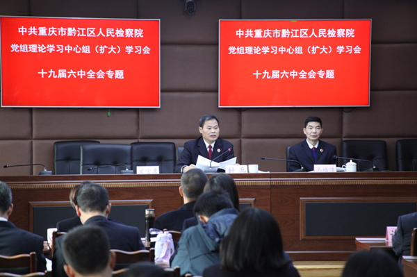 11月23日,我院召开党组理论学习中心组 (扩大)学习会,专题学习贯彻党的十九届六中全会精神。会议由院党组书记、检察长封兵主持,全院干警参加会议。