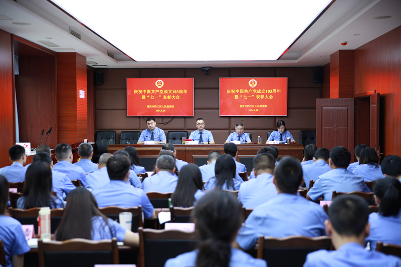 为热烈庆祝中国共产党成立103周年,传承党的优良传统,充分发挥优秀党员的先锋模范作用,6月28日,我院举行庆祝中国共产党成立103周年暨“七一”表彰大会,全院干警参加会议。会议由院党组副书记龚节华主持。
