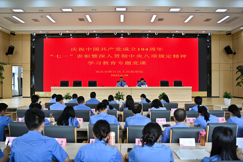 为进一步激励全院党员干部大力弘扬伟大建党精神,争做时代先锋,努力推动全院各项工作高质量开展,整体质效稳步提升。6月30日,黔江区检察院召开庆祝建党104周年“七一”表彰大会,院党组书记、检察长彭波为全院干警讲授深入贯彻中央八项规定精神学习教育专题党课。全院干警参加会议。