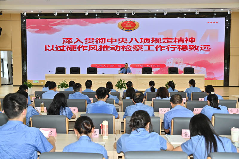彭波检察长以《深入贯彻中央八项规定精神 以过硬作风推动检察工作行稳致远》为题,为全院干警讲授了深入贯彻中央八项规定精神的纪律党课。党课围绕深刻认识中央八项规定的重大意义、准确把握中央八项规定精神的深刻内涵、持续落实中央八项规定精神、以中央八项规定精神引领检察事业高质量发展等四个方面进行了详细阐释,深刻揭示党的作风建设的重要性和紧迫性,要求全院干警始终坚持把习近平新时代中国特色社会主义思想作为做好检察工作的“源头活水”,认真学习贯彻习近平法治思想,坚持学干融合、学以致用、知行合一,把开展学习教育与推动检察中心工作结合起来,完整、准确、全面贯彻新发展理念,抓牢高质量发展这个首要任务,以检察履职的实际成效检验学习教育成果。