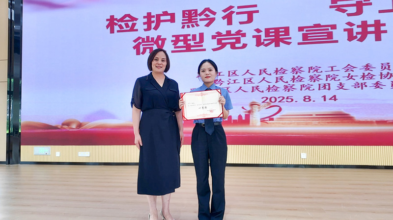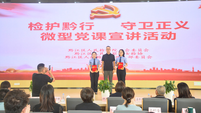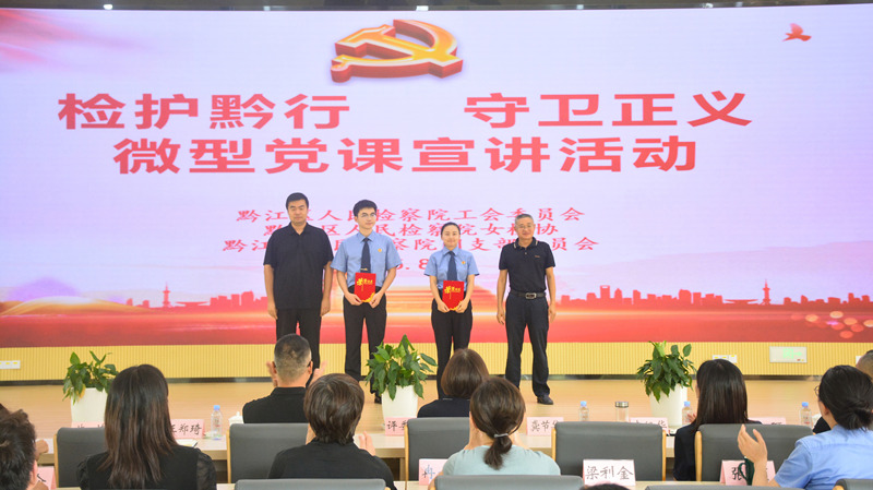 8月14日,黔江区检察院工会委员会、女检协 、团支部委员会联合开展“检护黔行·守卫正义”暨“深入贯彻中央八项规定精神,加快中心城市建设破局起势”微型党课宣讲活动。活动邀请188体育 四分院党组成员、政治部主任姜玲参加,院领导班子、全院干警观摩比赛。