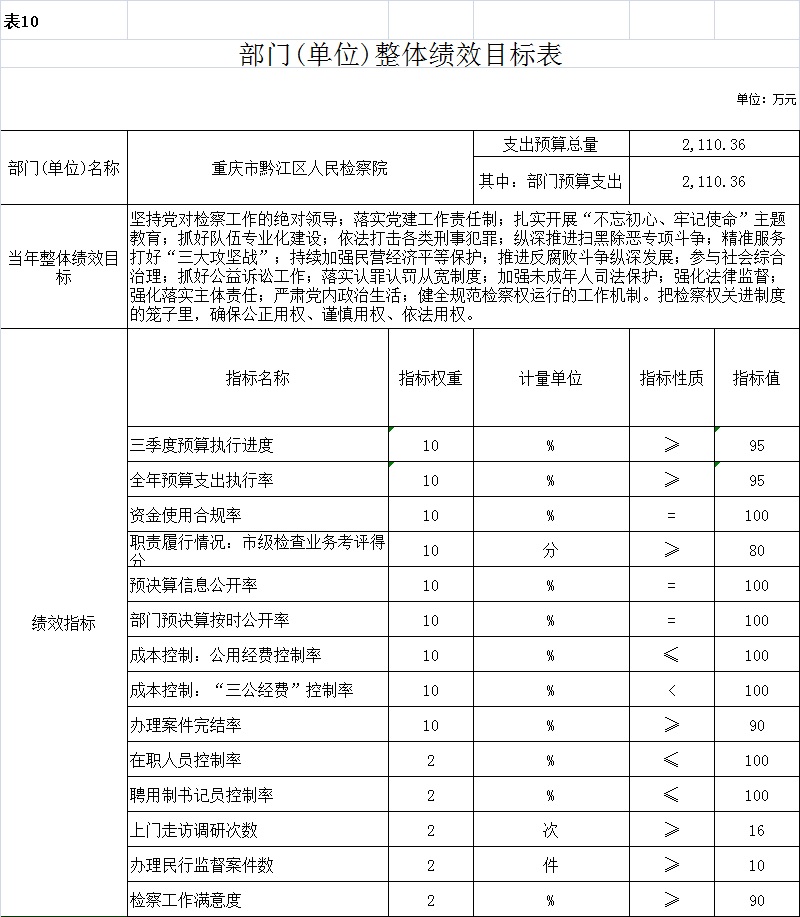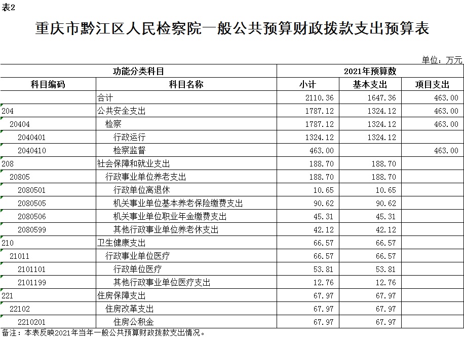重庆市黔江区人民检察院2021年部门预算公开