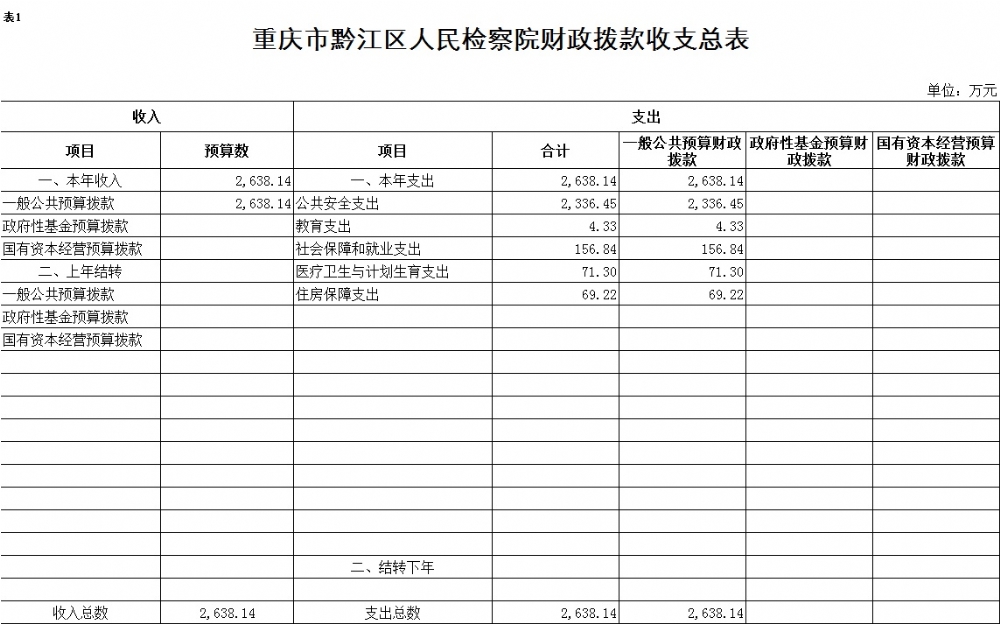2017年一般公共预算财政拨款收入2638.14万元,一般公共预算财政拨款支出2638.14万元,比2016年增加1220.84万元。其中:基本支出1716.38万元,比2016年增加637.08万元,主要原因是保障标准调整,主要用于保障在职人员工资福利及社会保险缴费、离退休人员离退休费及生活补助,保障部门正常运转的各项商品服务支出;项目支出921.76万元,比2016年增加583.76万元,主要原因是办案业务经费增加,主要用于查办和预防职务犯罪、公诉和审判监督、侦查监督、执行监督、控告申诉、检察室运行、环保资源类案件集中办理等重点工作。