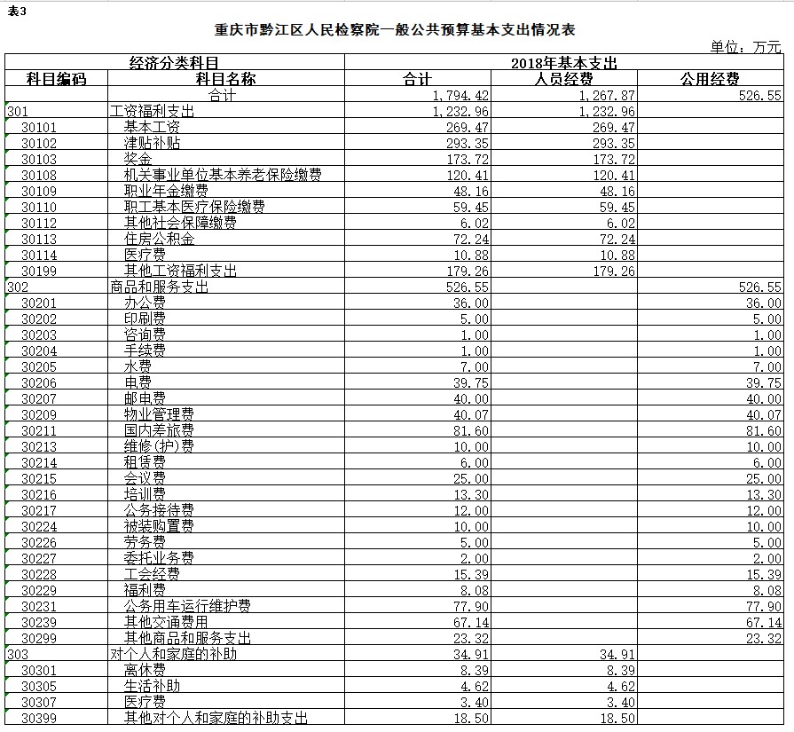 重庆市黔江区人民检察院2018年部门预算情况说明