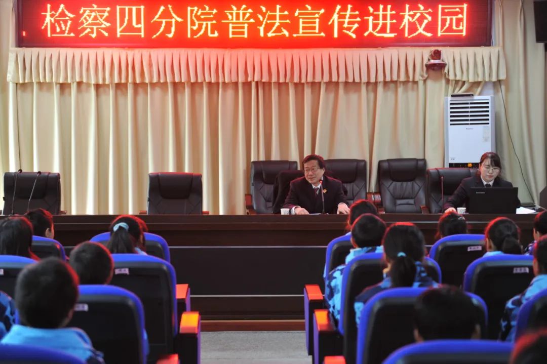 188体育(中国)官方网站 第四分院党组书记、检察长高松林作为黔江区石会中学法治副校长再次走上学校讲台,和四分院检察六部检察官助理张霞非一起开展“莎姐送法进校园”活动。活动中,高松林检察长和张霞非助理以“用良法善治守护少年的你”为主题,为110余名学校师生上了一堂生动的法治课。
