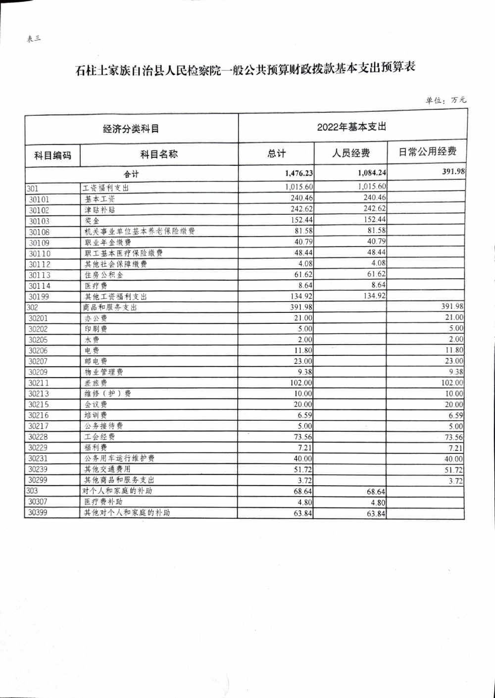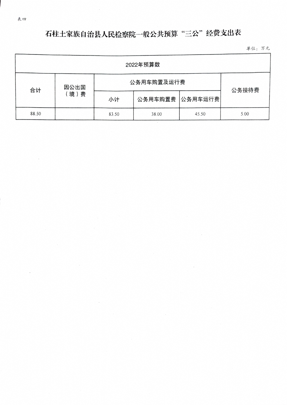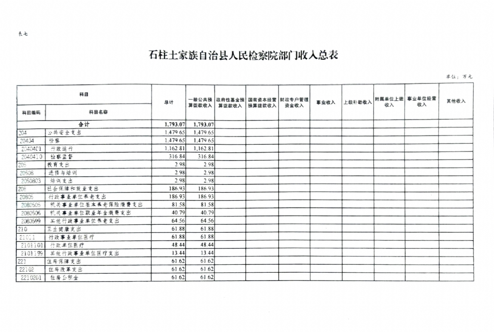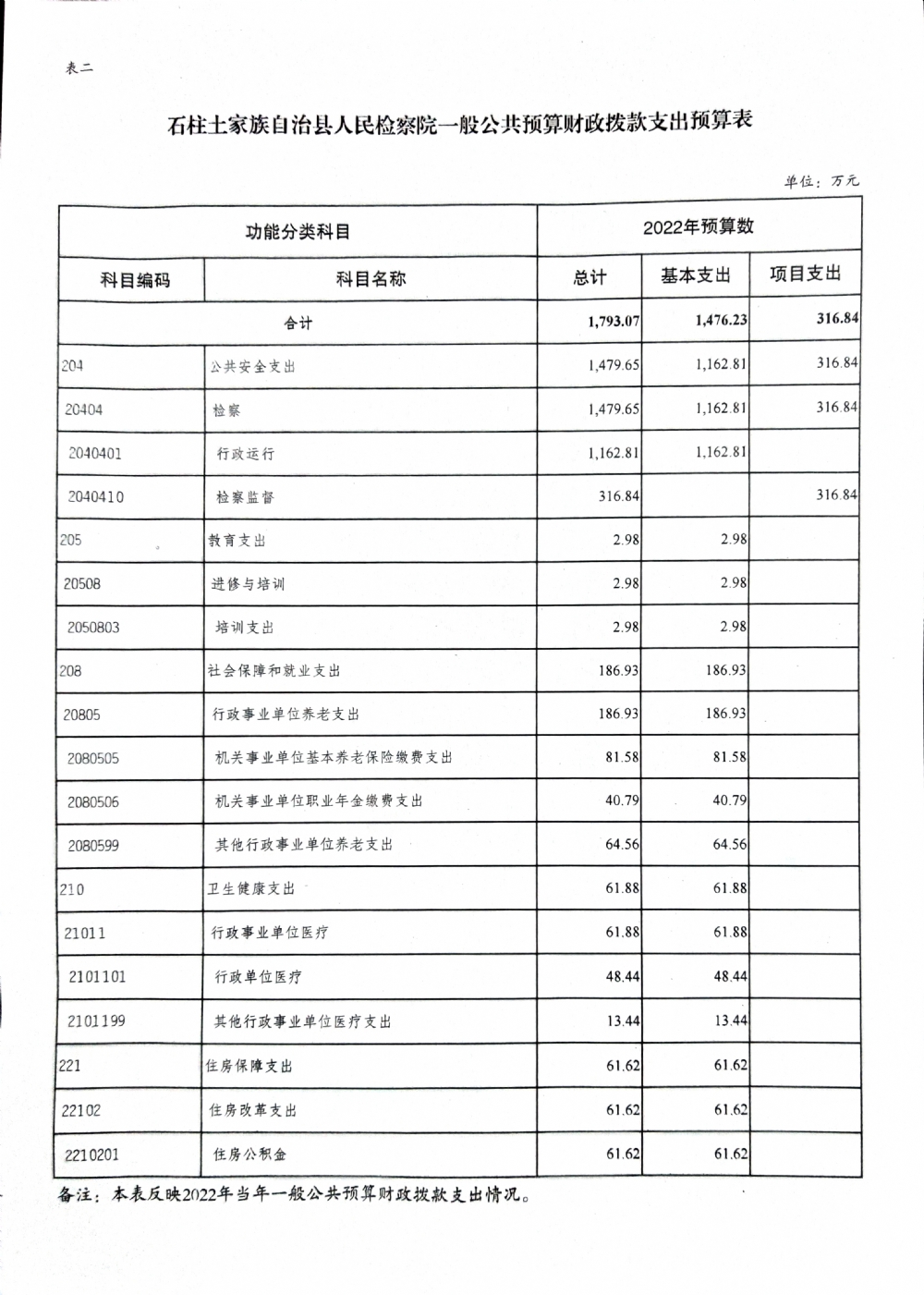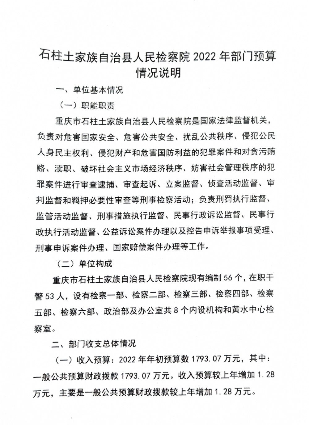 石柱土家族自治县人民检察院2022年部门预算公开