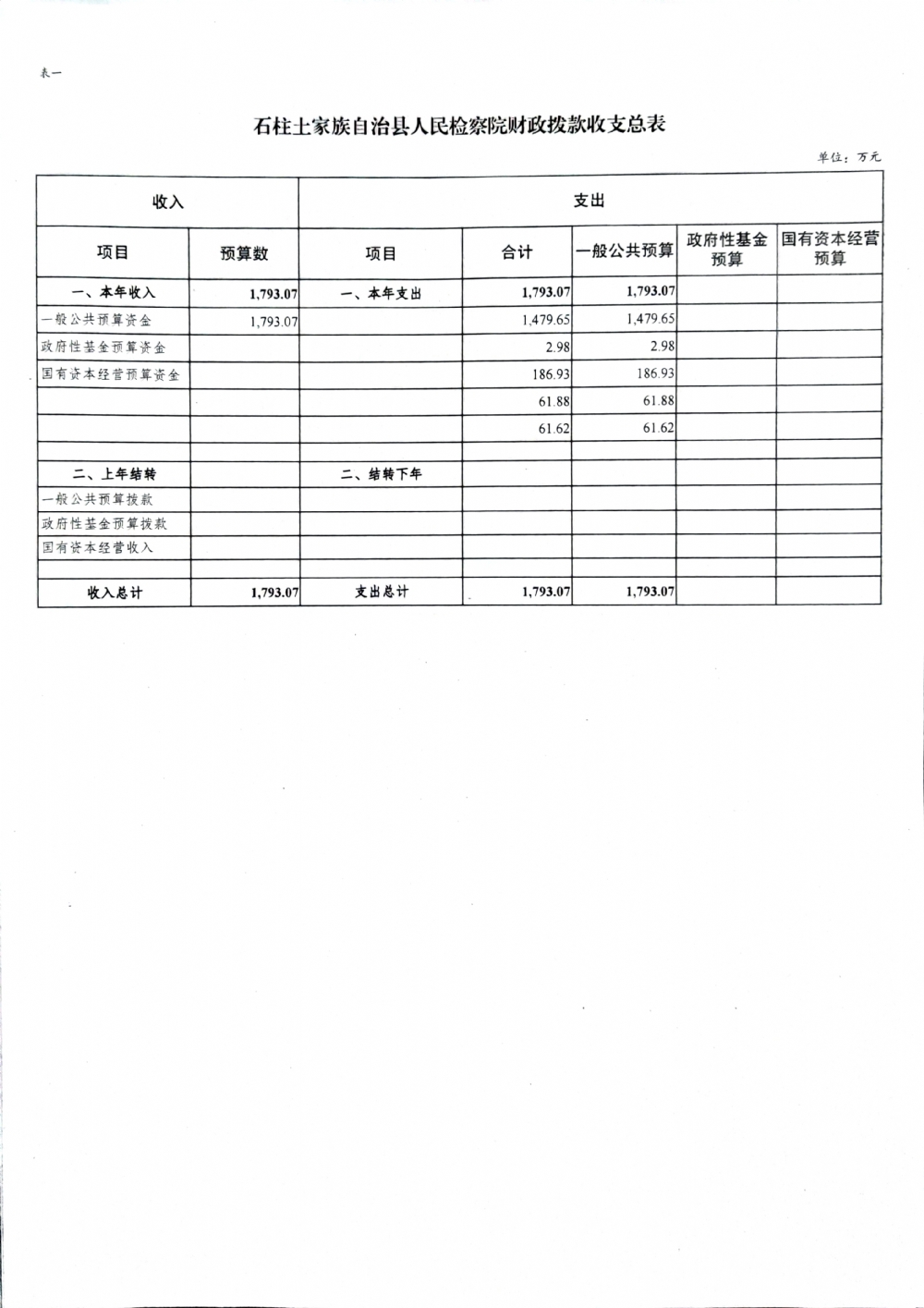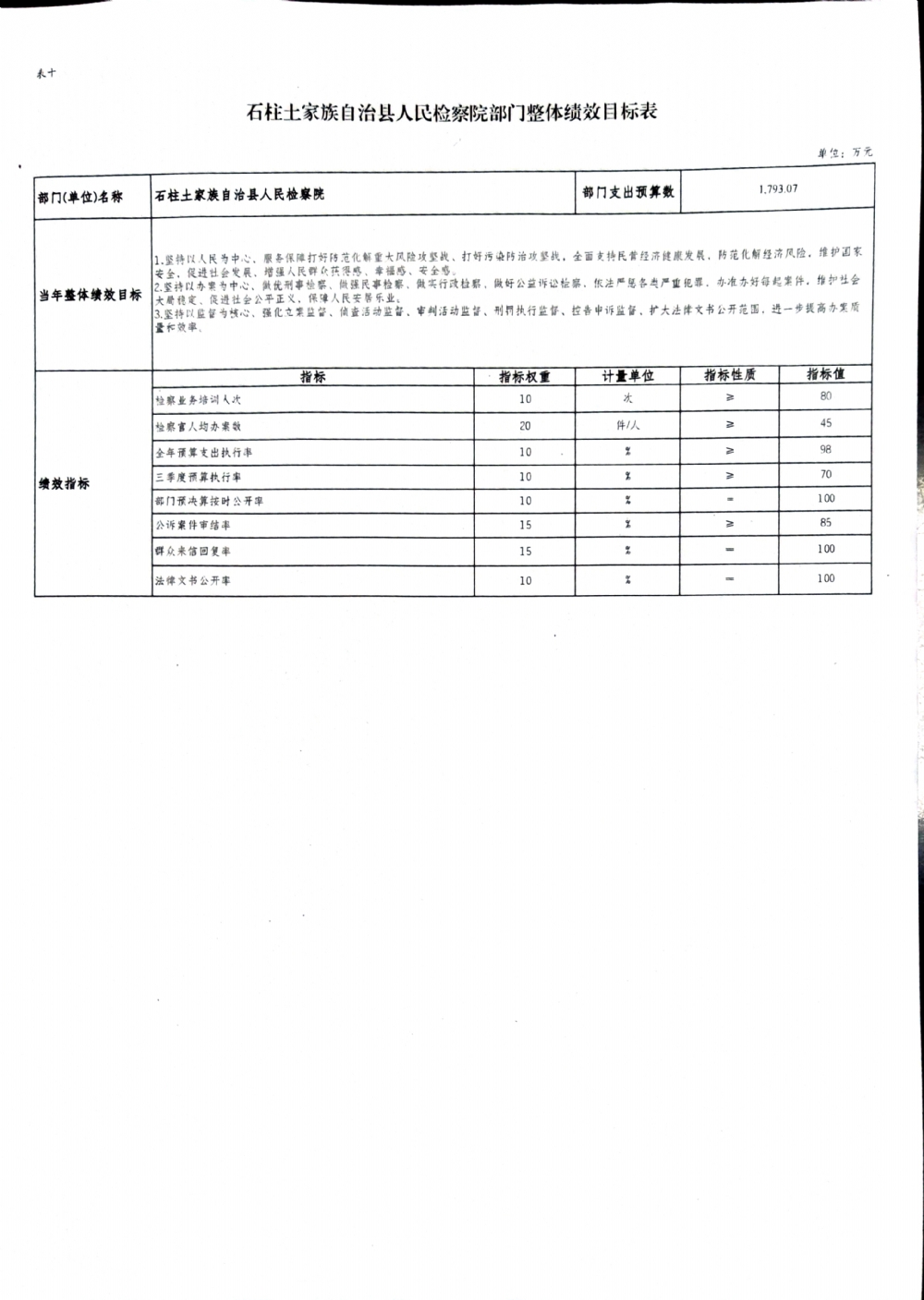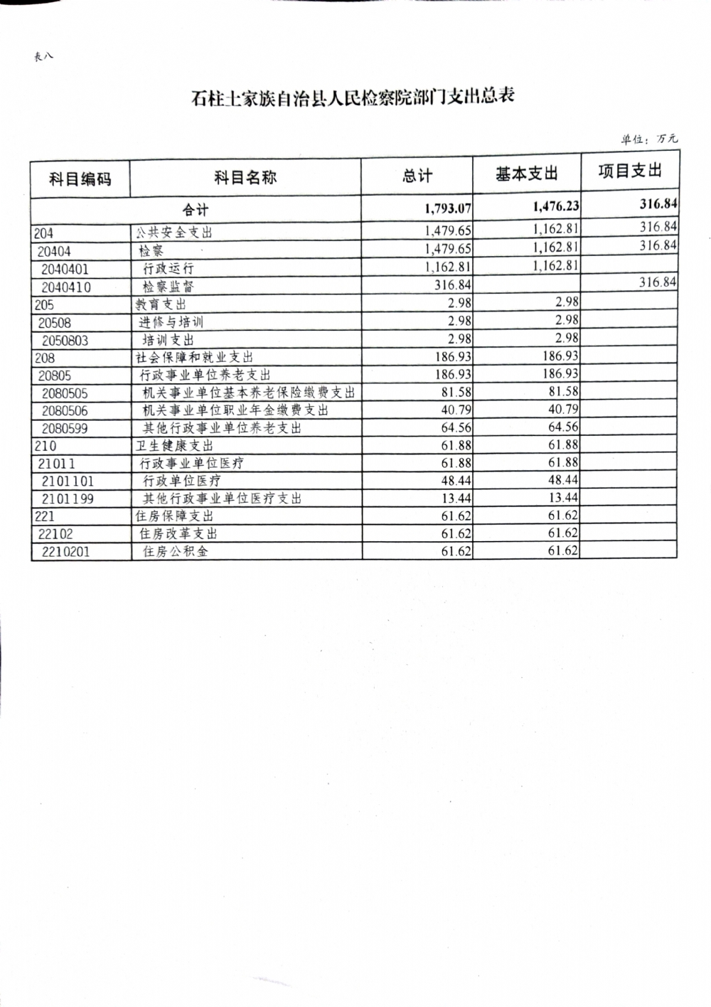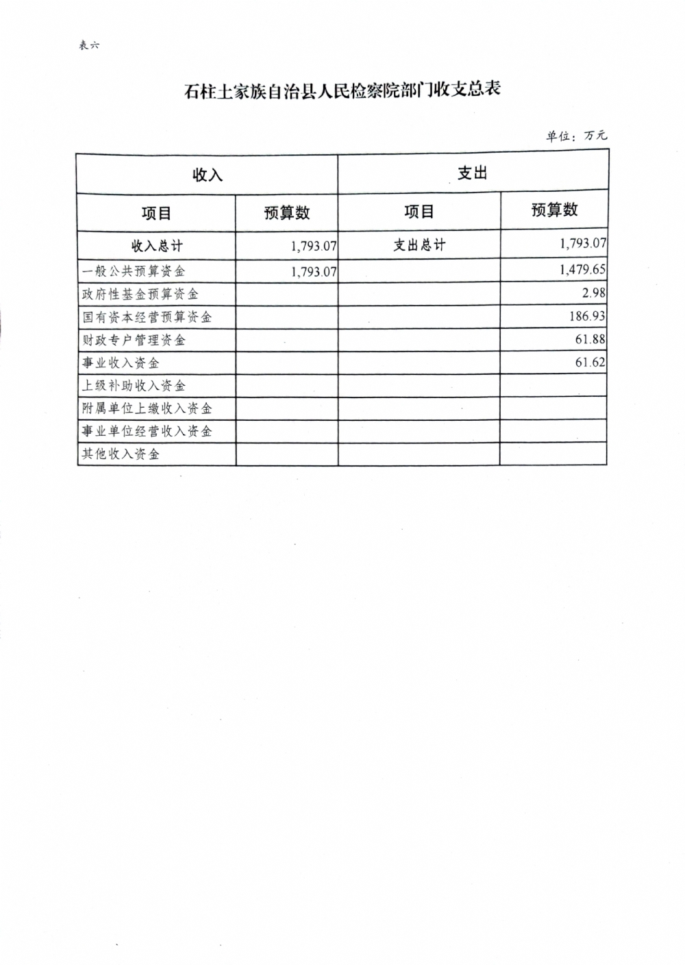 石柱土家族自治县人民检察院2022年部门预算公开