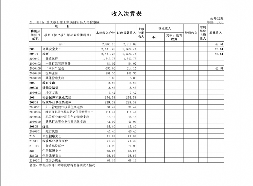 重庆市石柱土家族自治县人民检察院2019年度部门决算情况说明
