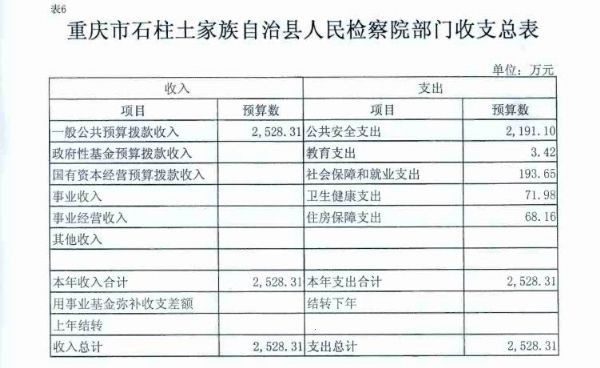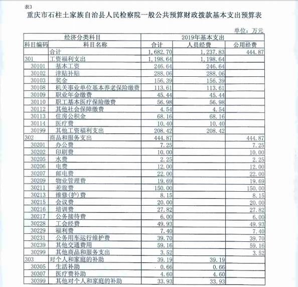 重庆市石柱土家族自治县人民检察院2019年部门预算情况说明