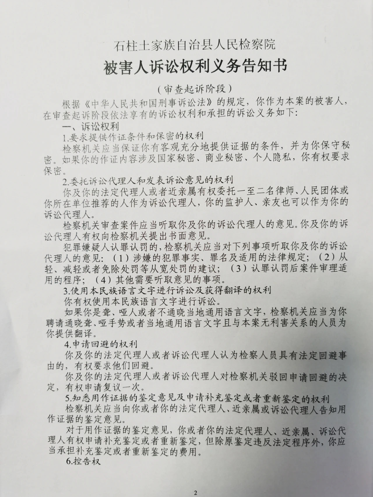 因该案被害人数众多,根据《中华人民共和国刑事诉讼法》的有关规定,经本院联系,仍有部分被害人无法送达,现采取公告方式告知本案被害人在审查起诉阶段享有的权利义务,祥见《石柱土家族自治县人民检察院被害人诉讼权利义务告知书(审查起诉阶段)》。