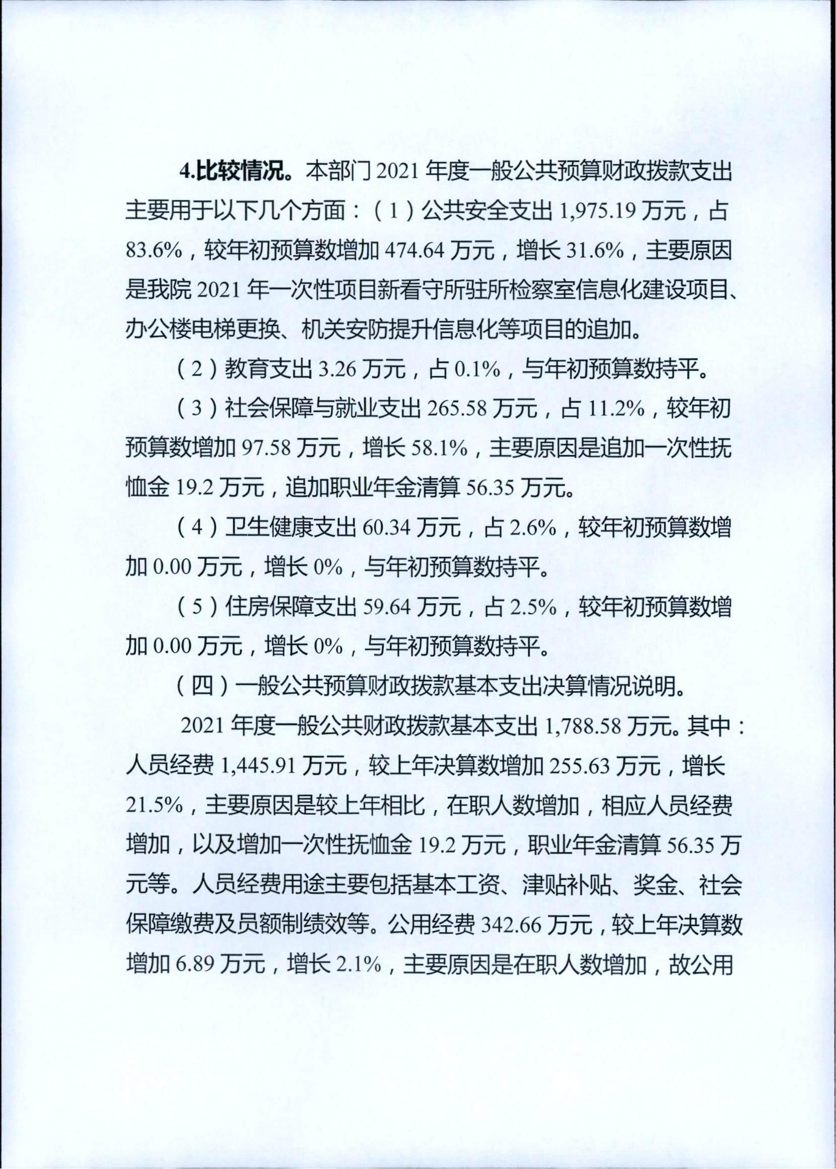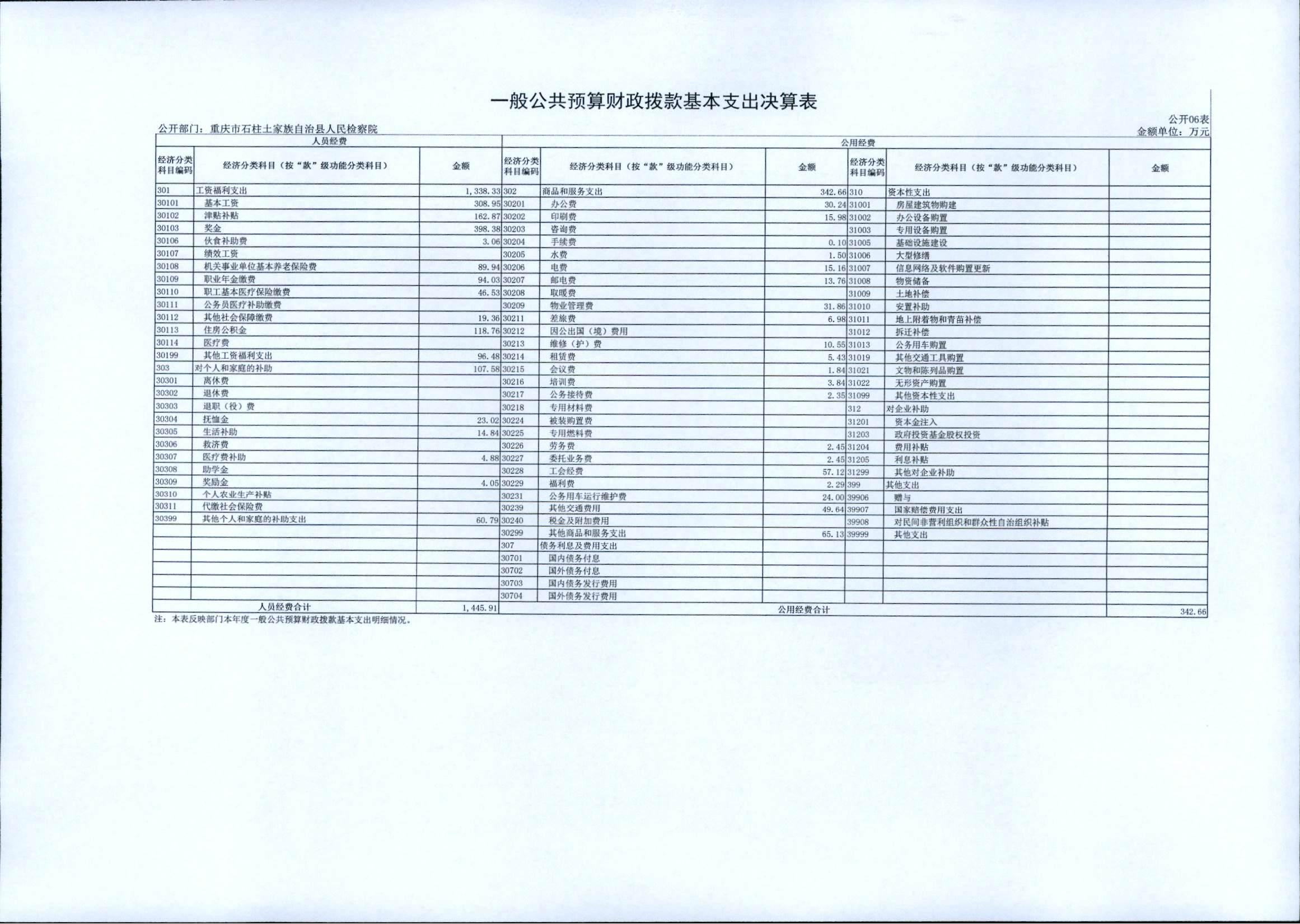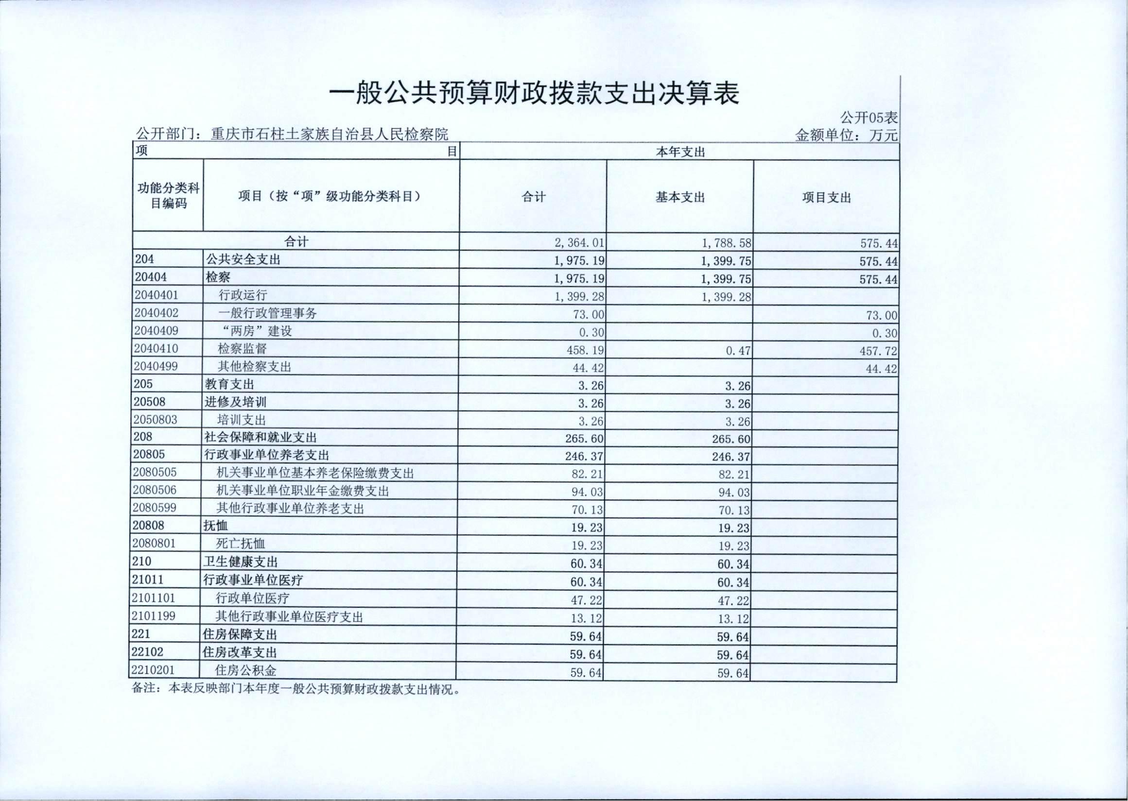 重庆市石柱土家族自治县人民检察院2021年度部门决算情况公开