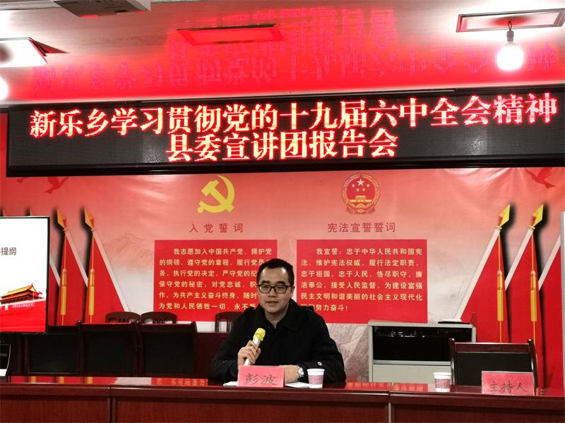 1月20日,根据县委统一安排,县委宣讲团成员、院党组书记、检察长彭波到所联系的新乐乡宣讲党的十九届六中全会精神,新乐乡政府干部职工、村社区干部参会。