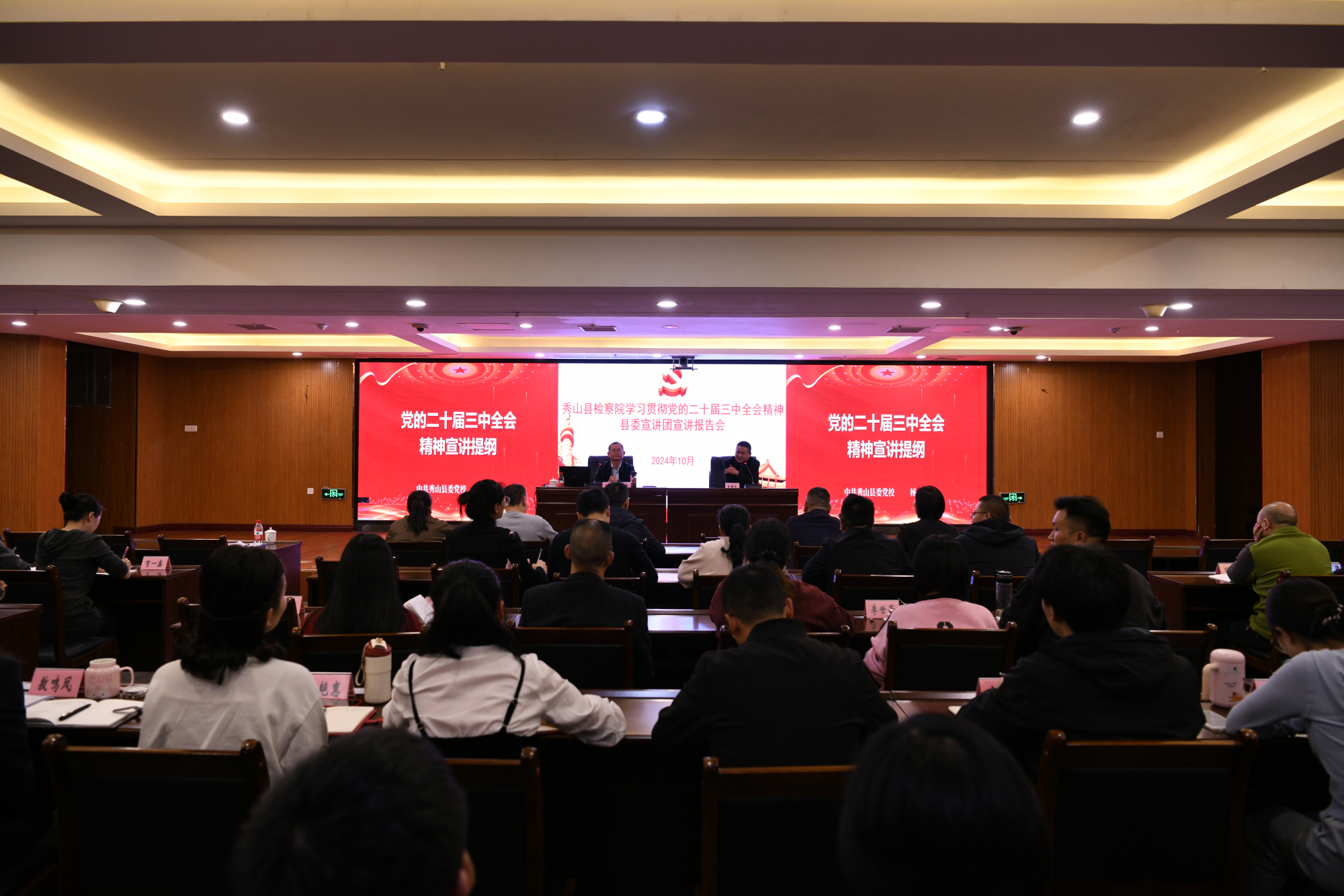 1011日,检察院举行学习贯彻党的二十届三中全会精神委宣讲团宣讲报告会。委宣讲团成员、县委党校常务副校长、县行政学校副校长杨华作宣讲报告。检察院党组成员政治部主任杨宪主持会议院领导班子成员、检委会专职委员及全院干警参会。