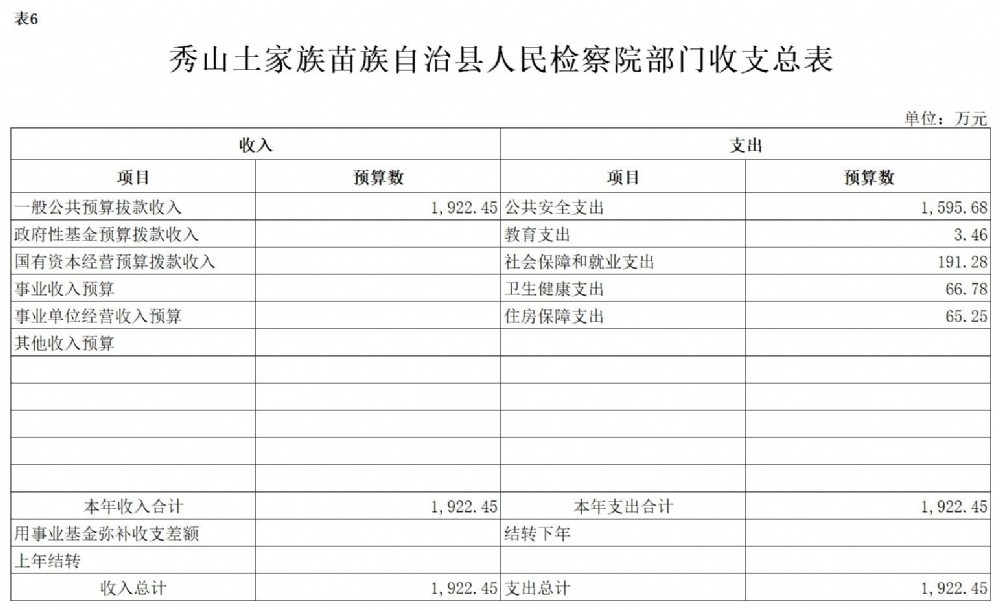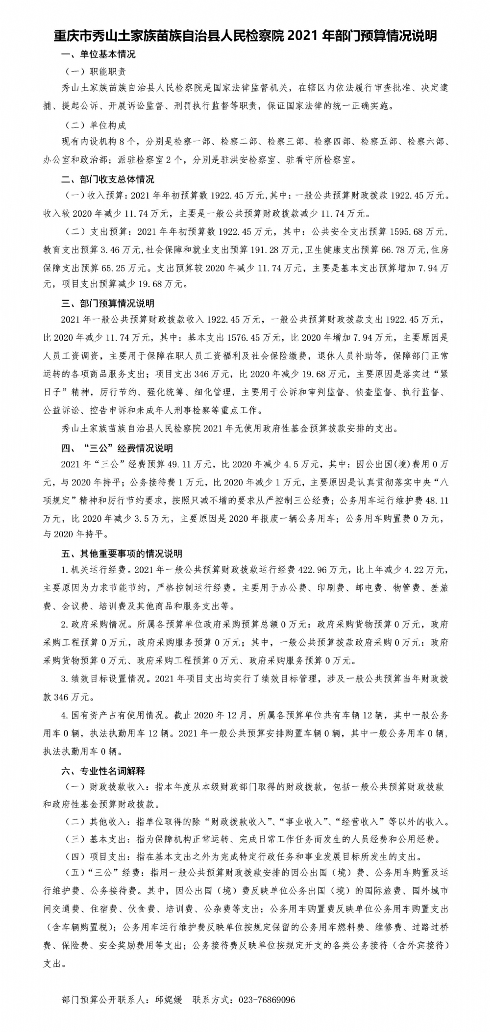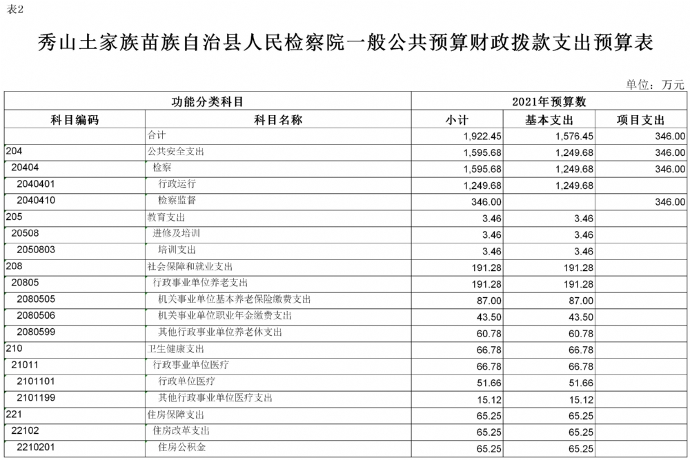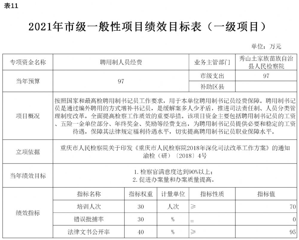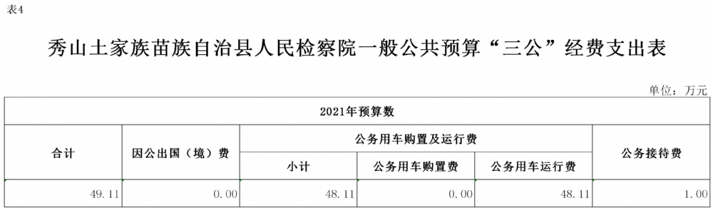 重庆市秀山土家族苗族自治县人民检察院2021年部门预算公开