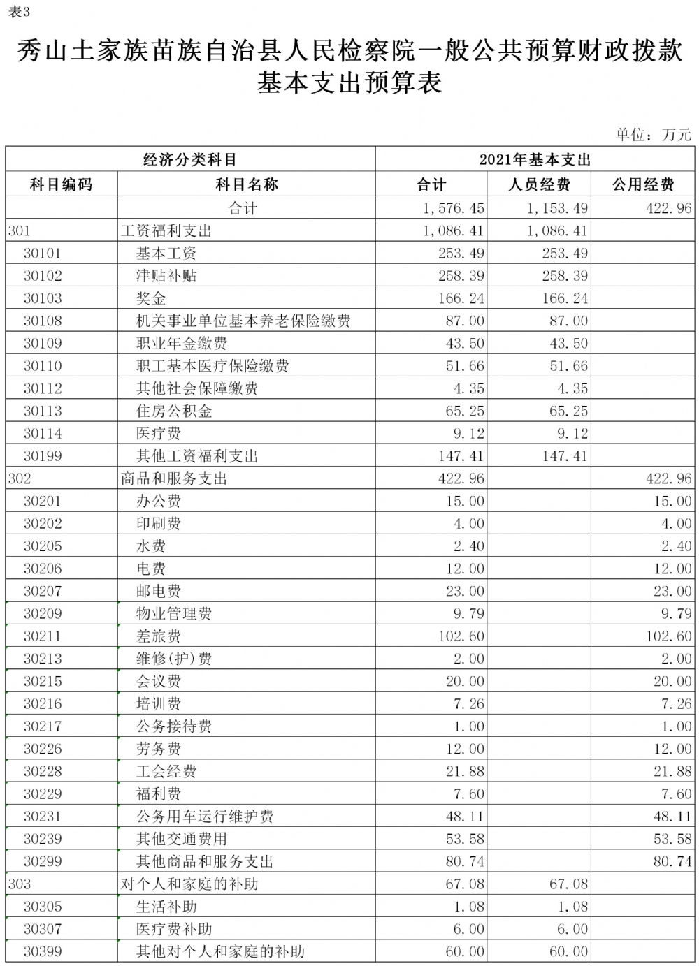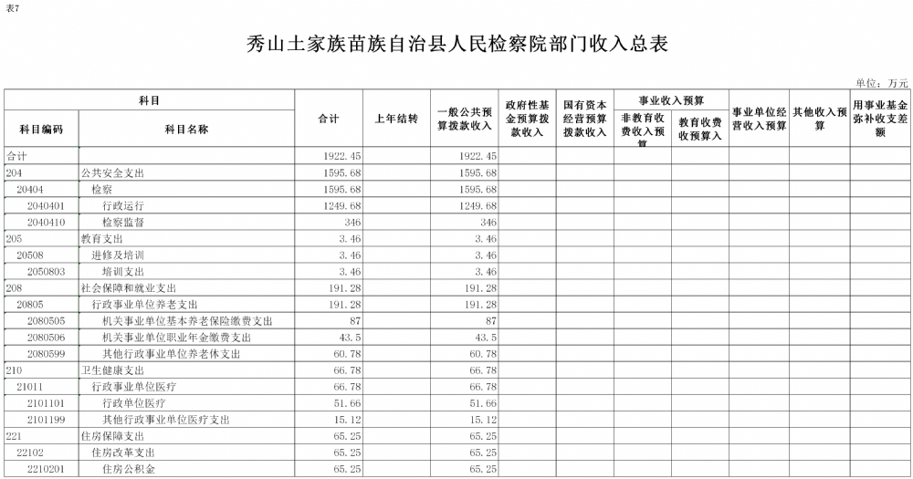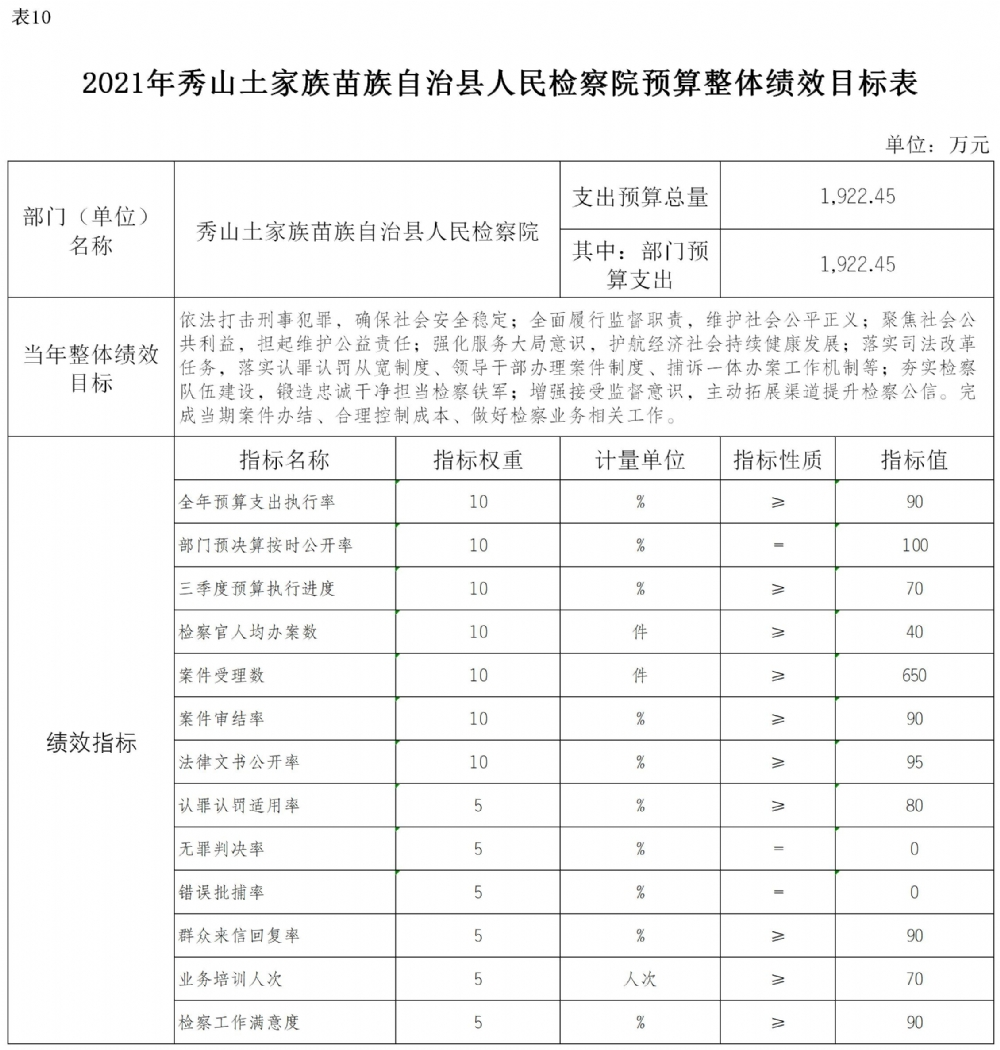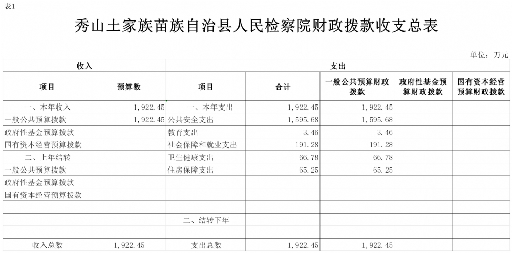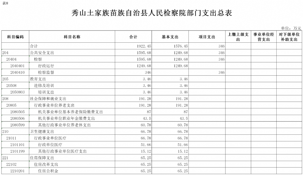 重庆市秀山土家族苗族自治县人民检察院2021年部门预算公开