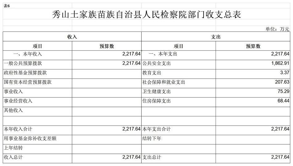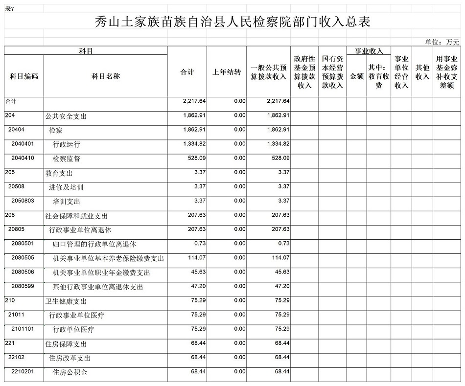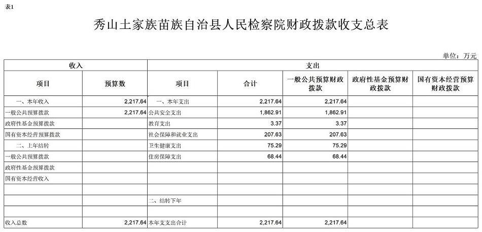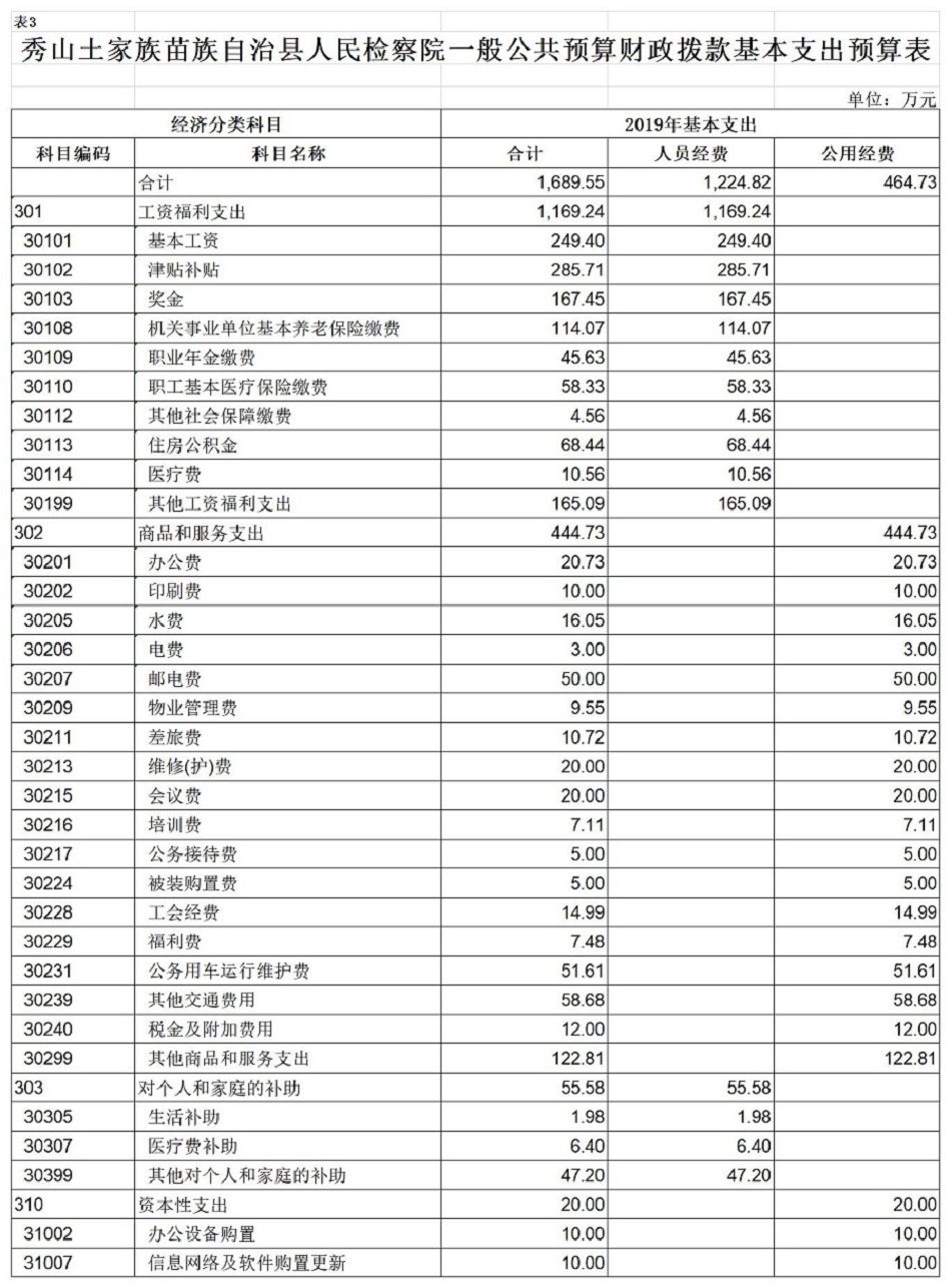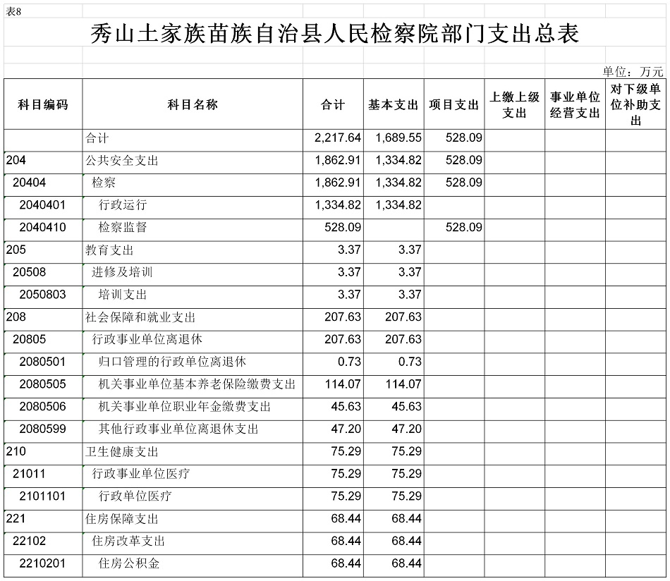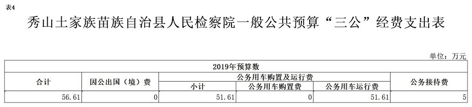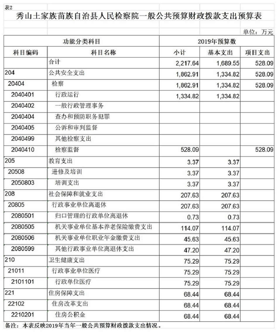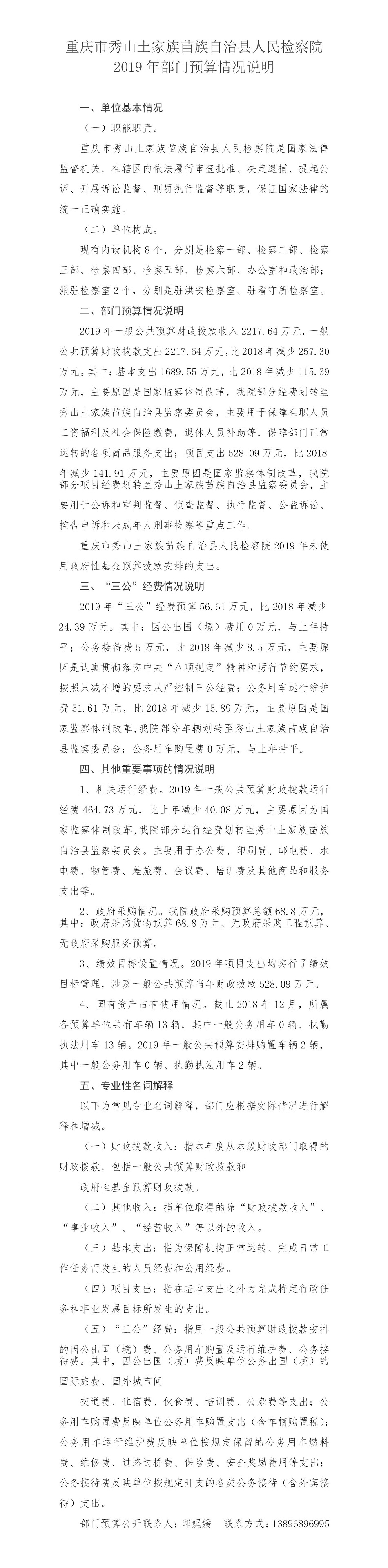 重庆市秀山土家族苗族自治县人民检察院2019年部门预算公开