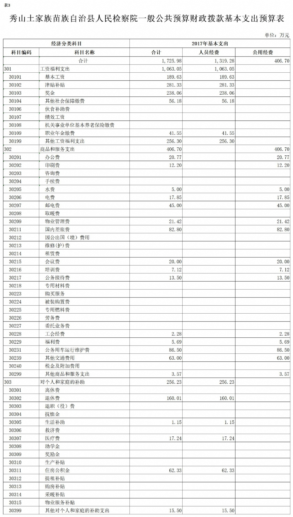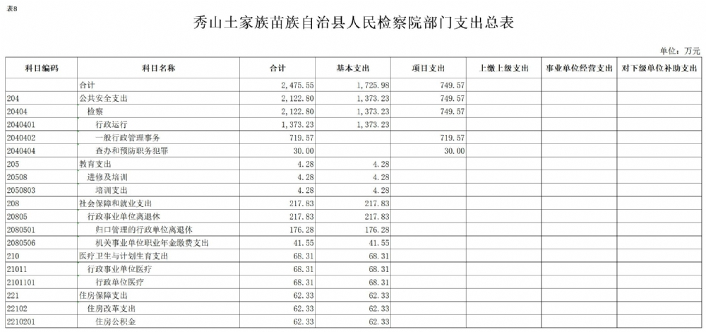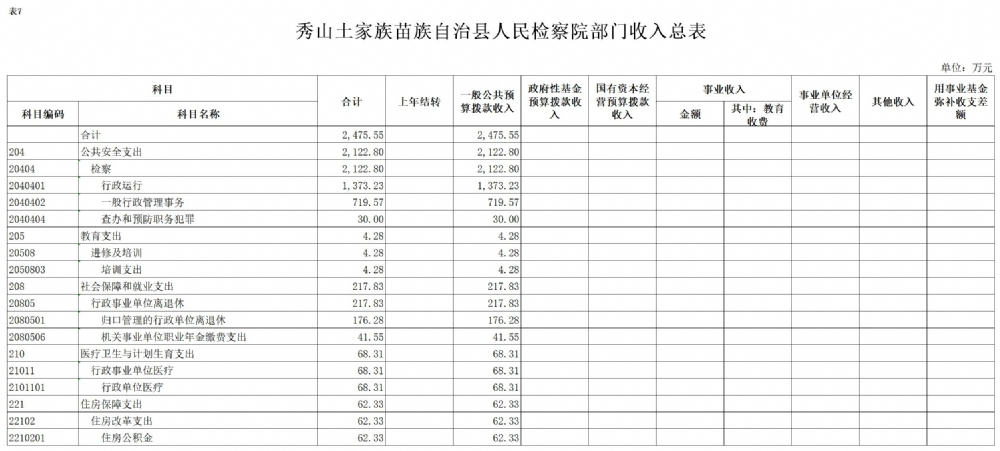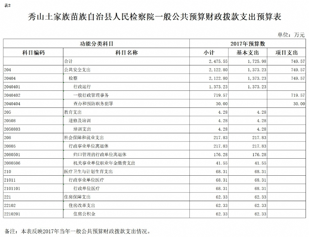 2017年秀山县人民检察院预算公开